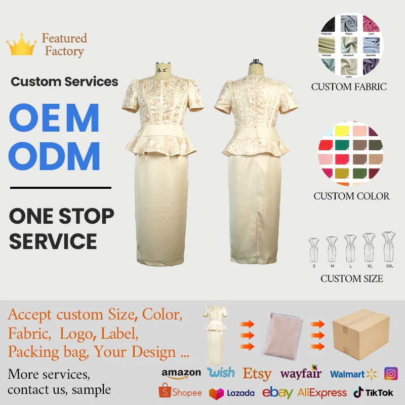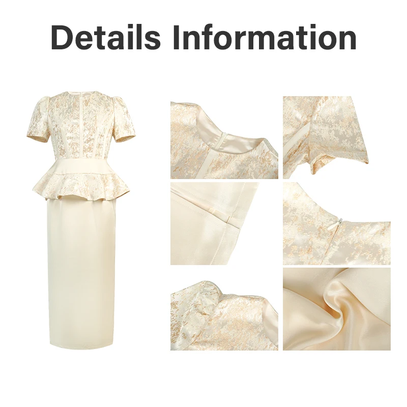 ZYHT 65411 Sweet Solid Vintage Apricot Puff Sleeve Midi Skirt Back Slit Fancy Dresses Party