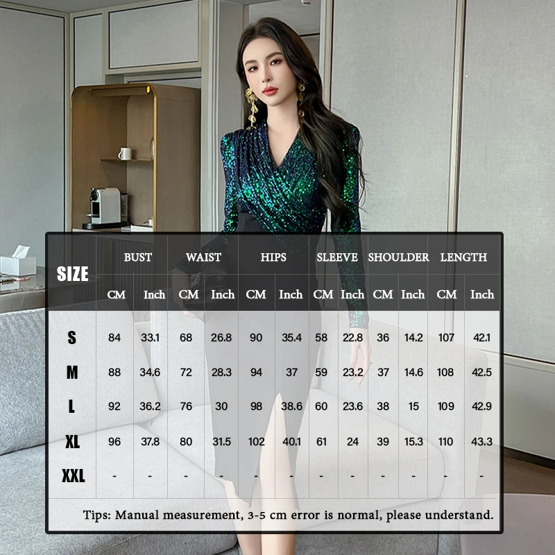 ZYHT 30757 Emerald Green Sequined Bling Midi Dress for Women Eco-Friendly Sexy Party Club Night Ladies Evening Dress for Special