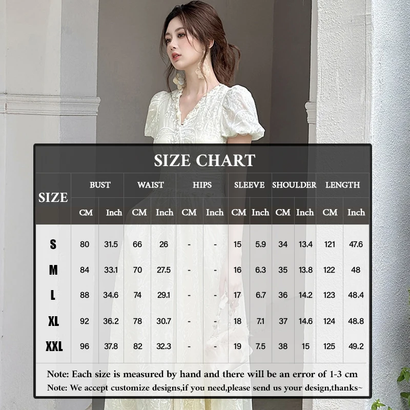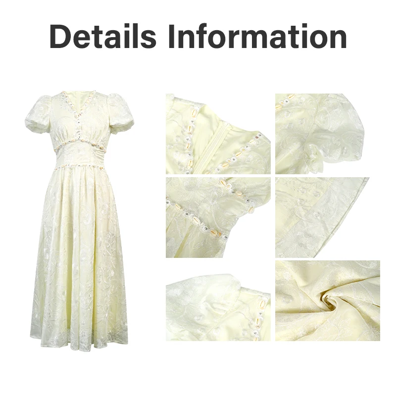 ZYHT 21842 Women's Wedding Dresses Lace Midi Dress with V - Neck Puff Short Sleeves and Smocked Waist