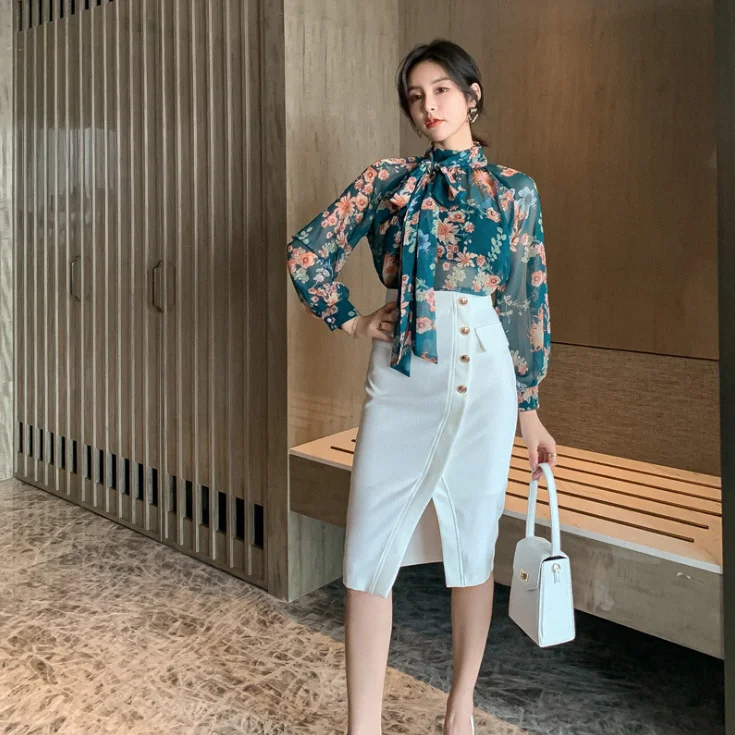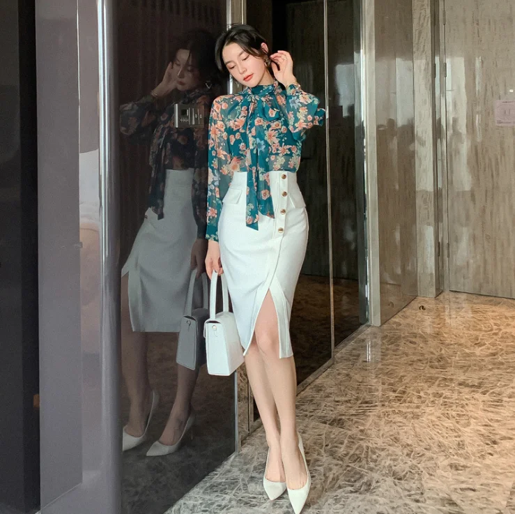 ZYHT 35113 New Style Wrap Hip Skirt Adults Knee Length Irregular Split Button Sexy Women Summer White Pencil Office Ladies Skirt