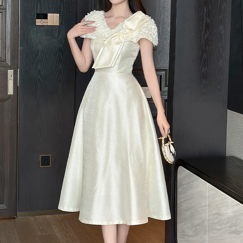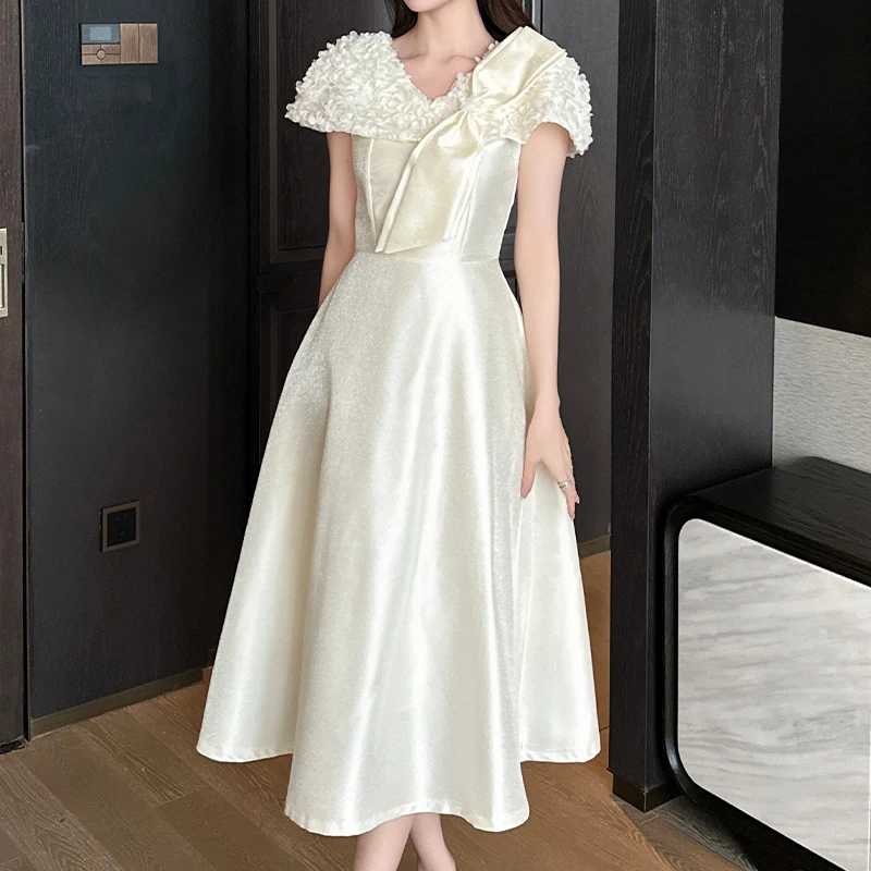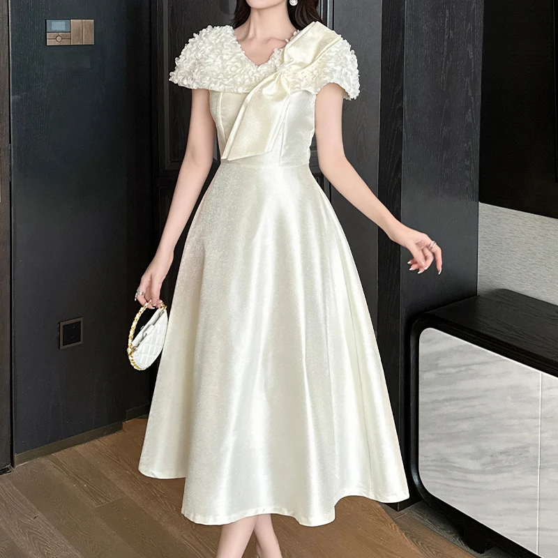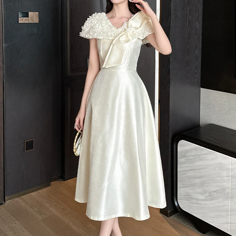 ZYHT 9893 Appliques Elegant Party Prom Long Vestido Women's a Line Satin Sexy Short Sleeve Wedding Evening Bridesmaid Dress