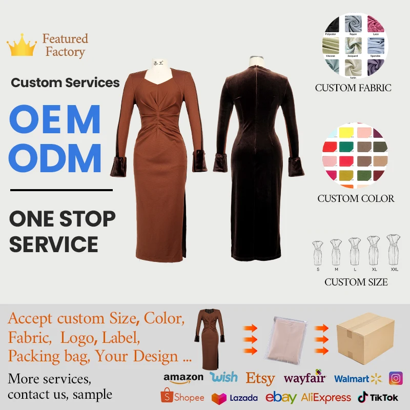 ZYHT 73902 Dark Green Blue Long Sleeve Simple Elegant Evening Dress Customize High End Women Clothing Manufacturer