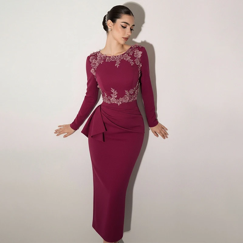 ZYHT 73902 Dark Green Blue Long Sleeve Simple Elegant Evening Dress Customize High End Women Clothing Manufacturer
