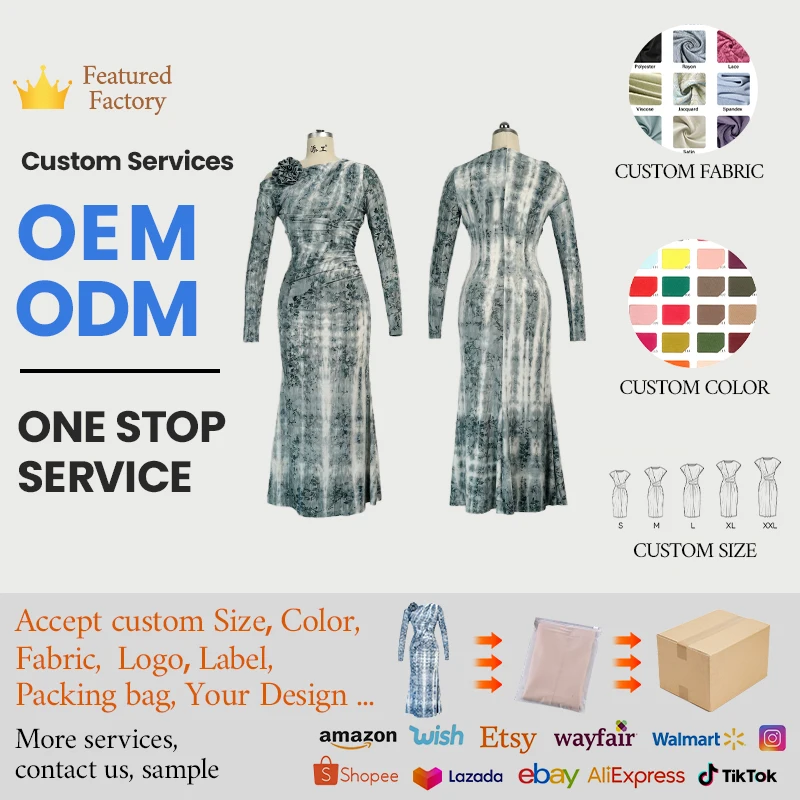 ZYHT 73902 Dark Green Blue Long Sleeve Simple Elegant Evening Dress Customize High End Women Clothing Manufacturer