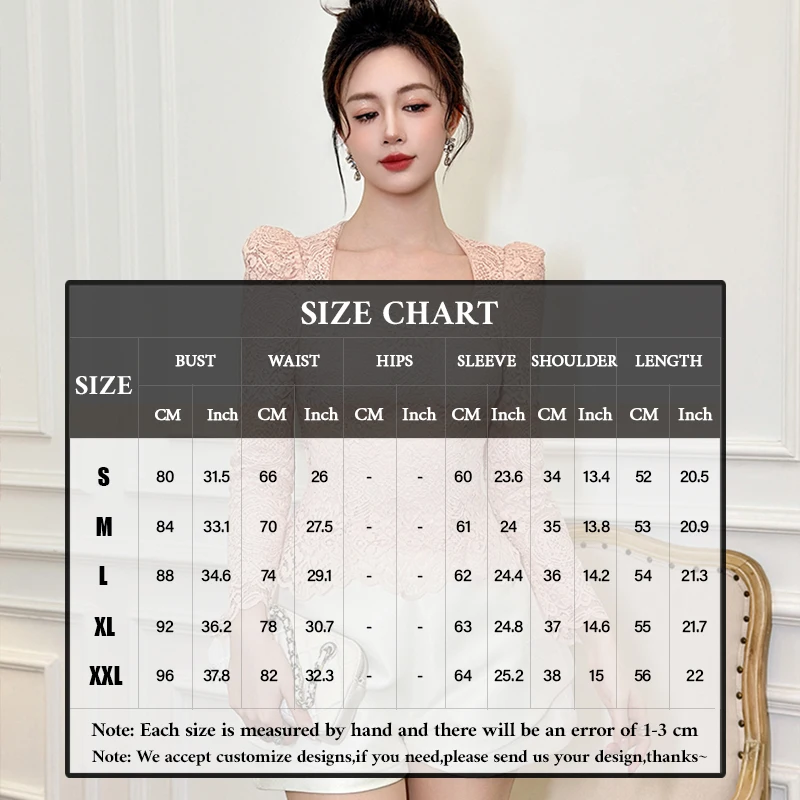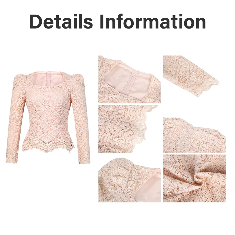 ZYHT 11675 Pink Lace Blouse with Square Neck & Puff Long Sleeves Blouses Cotton Blouses and Shirts for Women
