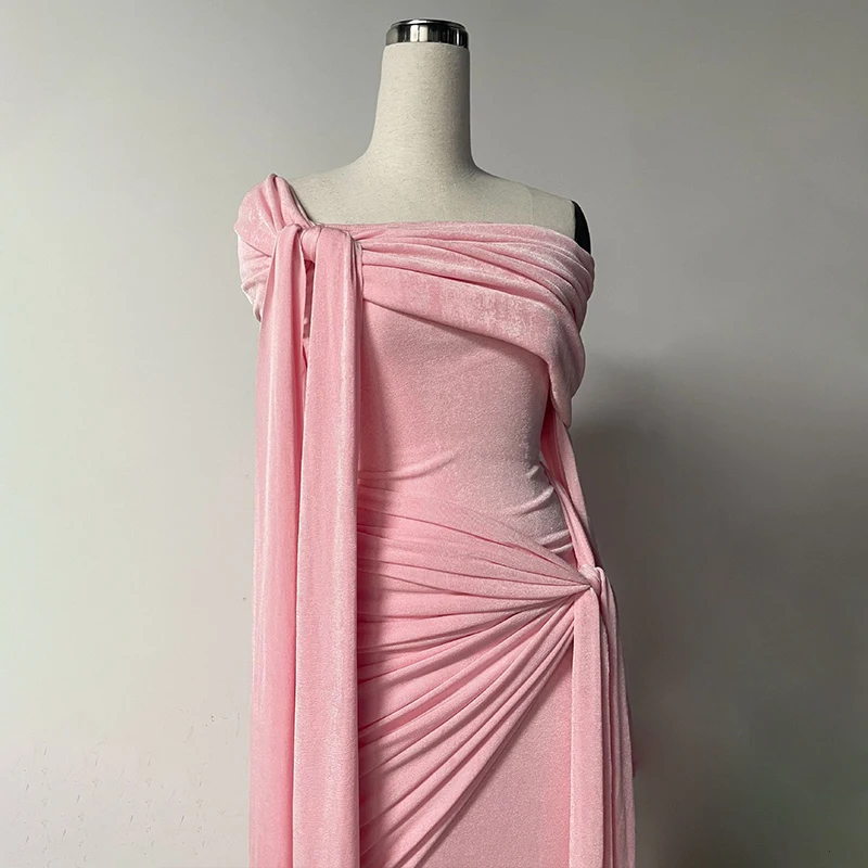 ZYHT 73907 Custom Design Long Sleeve High Neck Fashion Pleated Crystal Beads Ruched Knot High Slit Sexy Luxury Evening Dress