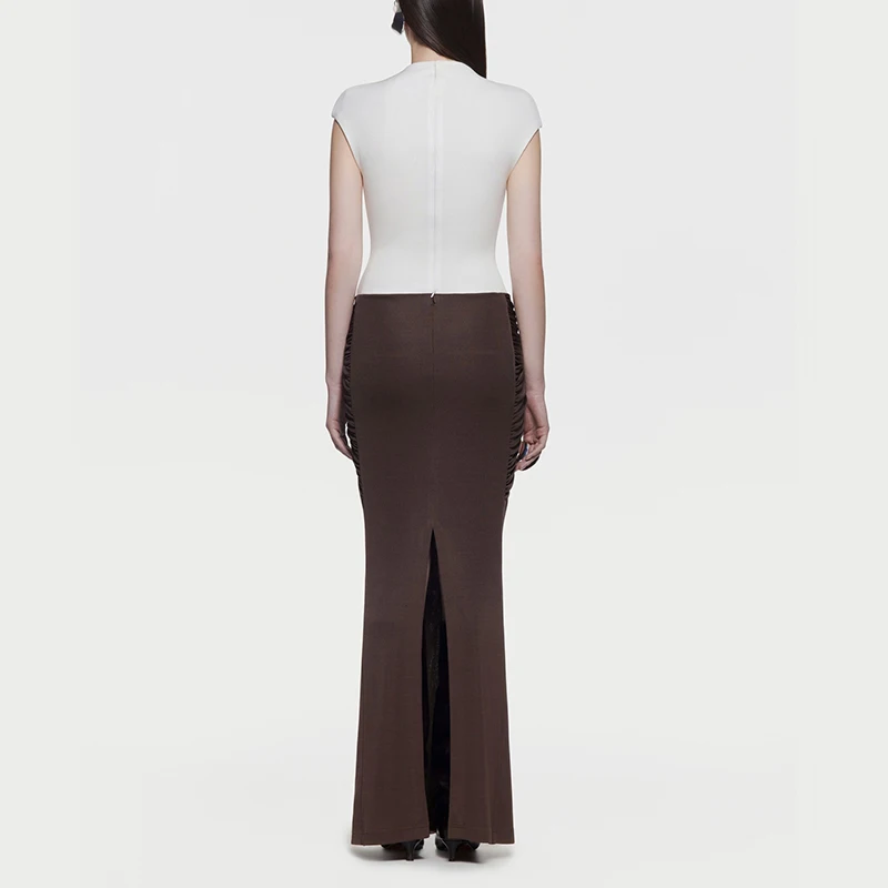 ZYHT 73848 Female Short Sleeve Maxi Bodycon Mermaid Party Dress for Ladies Ruched Black Summer Elegant Long Dress Women