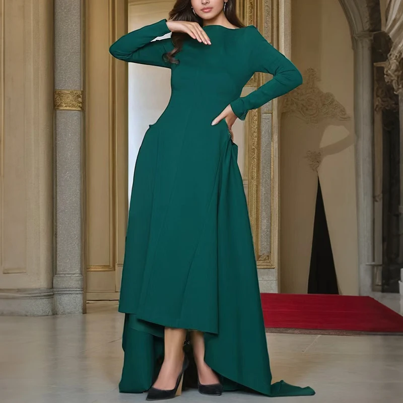 ZYHT 73902 Dark Green Blue Long Sleeve Simple Elegant Evening Dress Customize High End Women Clothing Manufacturer