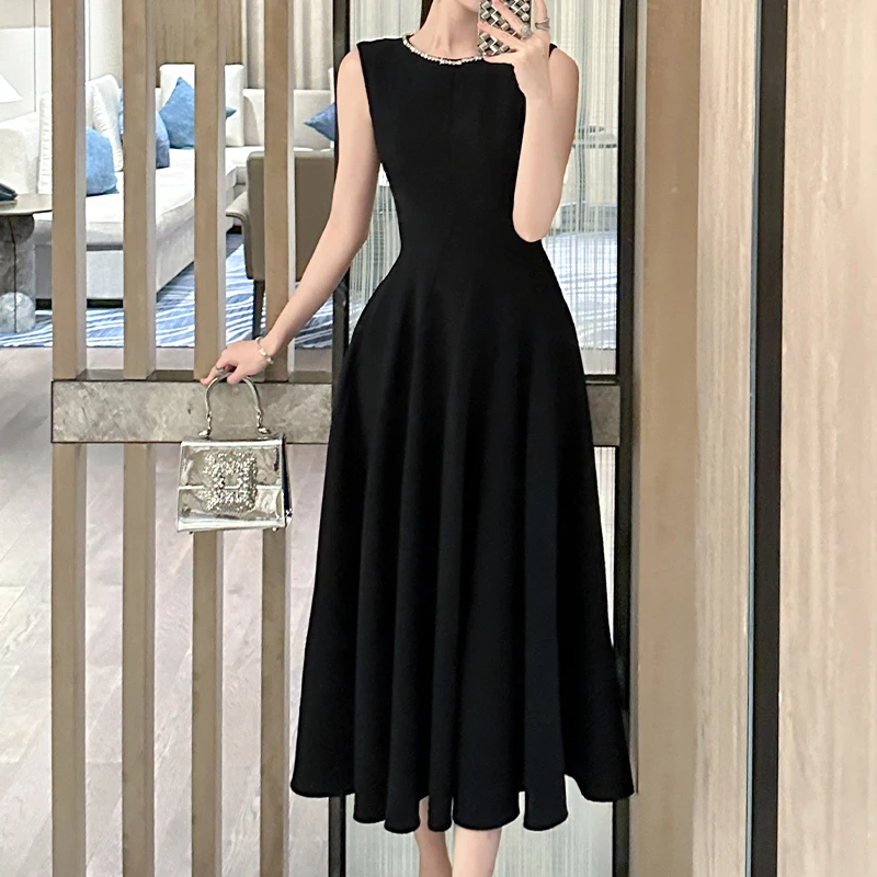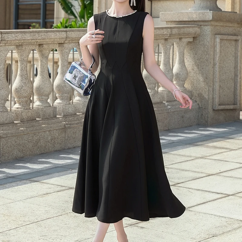 ZYHT 9779 Summer New Women's Sleeveless A-Line Maxi Ladies Pleated Dress Wholesale Long Simple Solid Color Casual Dresses