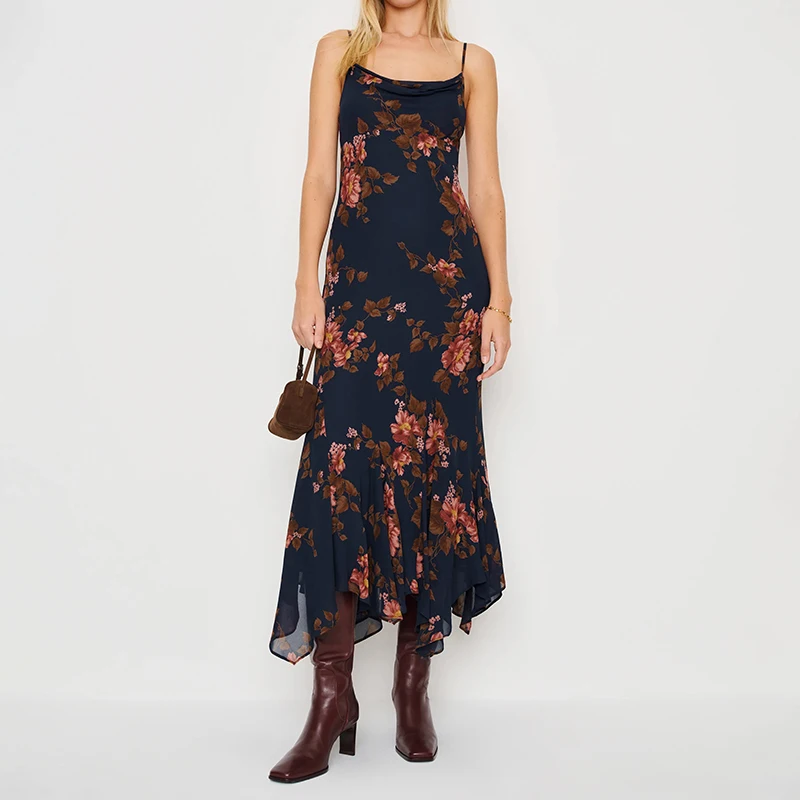 ZYHT 73799 Strapless Flower Printed Chiffon Maxi Sexy Long Women Dress O Neck Red Printed Follower Women Style