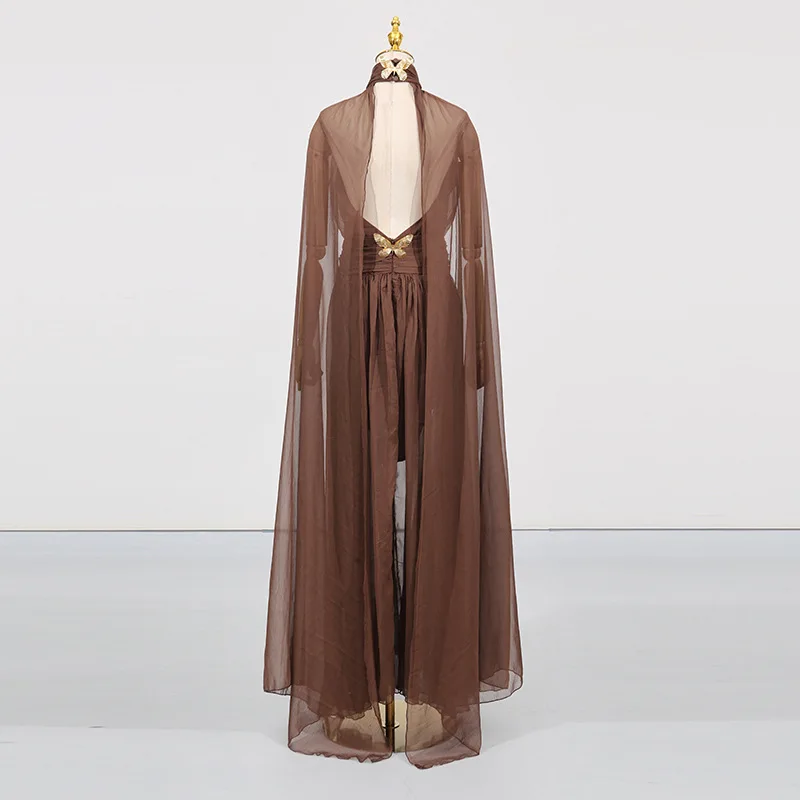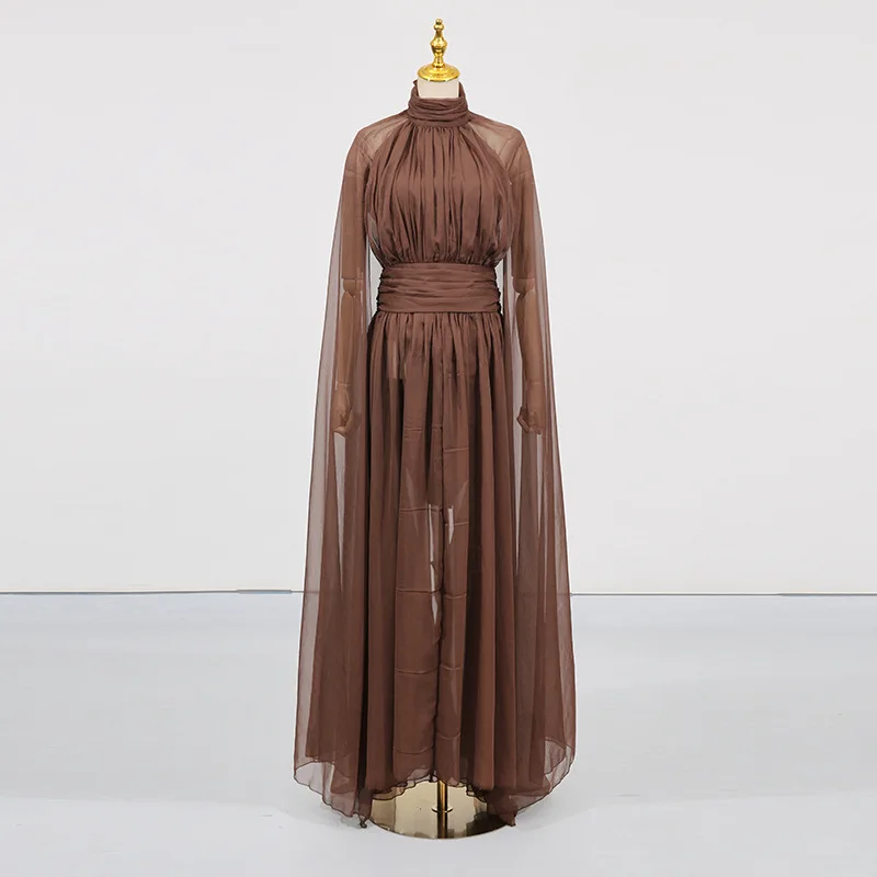 ZYHT 70112 Chiffon Georgette Fabric Chiffon Coffee Brown Cape a Line Elegant Dress Flowy Prom Party Evening Dresses for Women