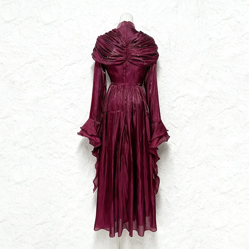 ZYHT 70109 Wholesale Chic Vestidos Pleated Dresses Stand Collar Organza Long Sleeve Autumn Dresses Elegant Maxi Women's Dress
