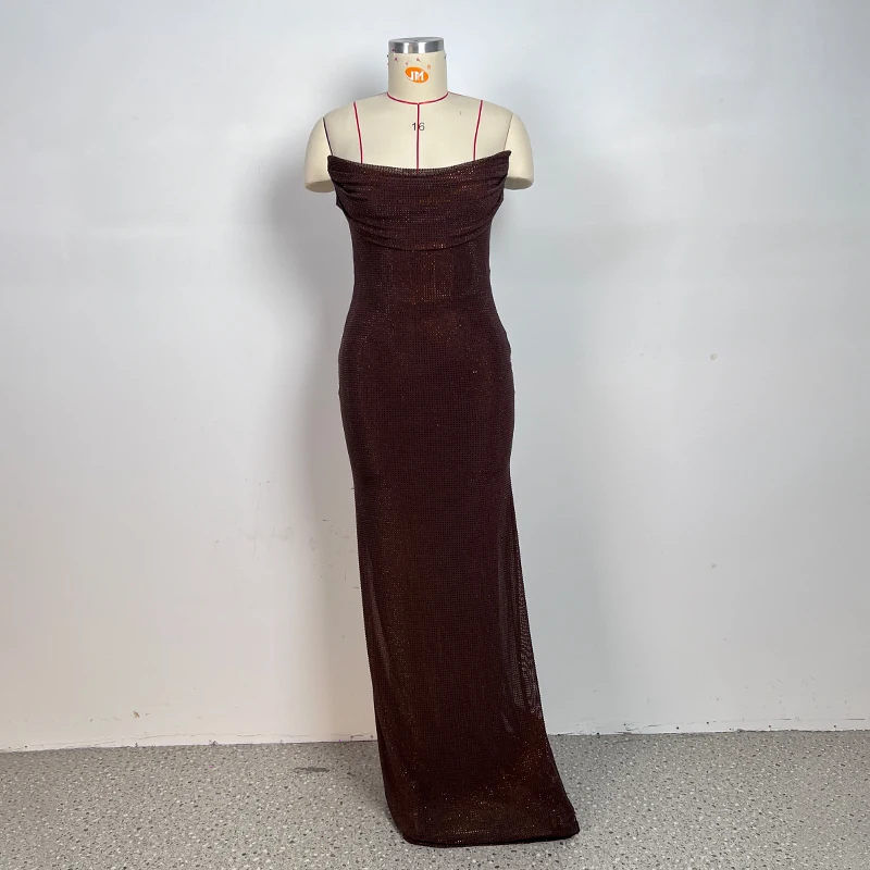 ZYHT 73606 Luxury Ladies Dress Crystal Sheath Ruched Bright Sexy Maxi Party Corset Strapless Backless Evening Dresses for Women