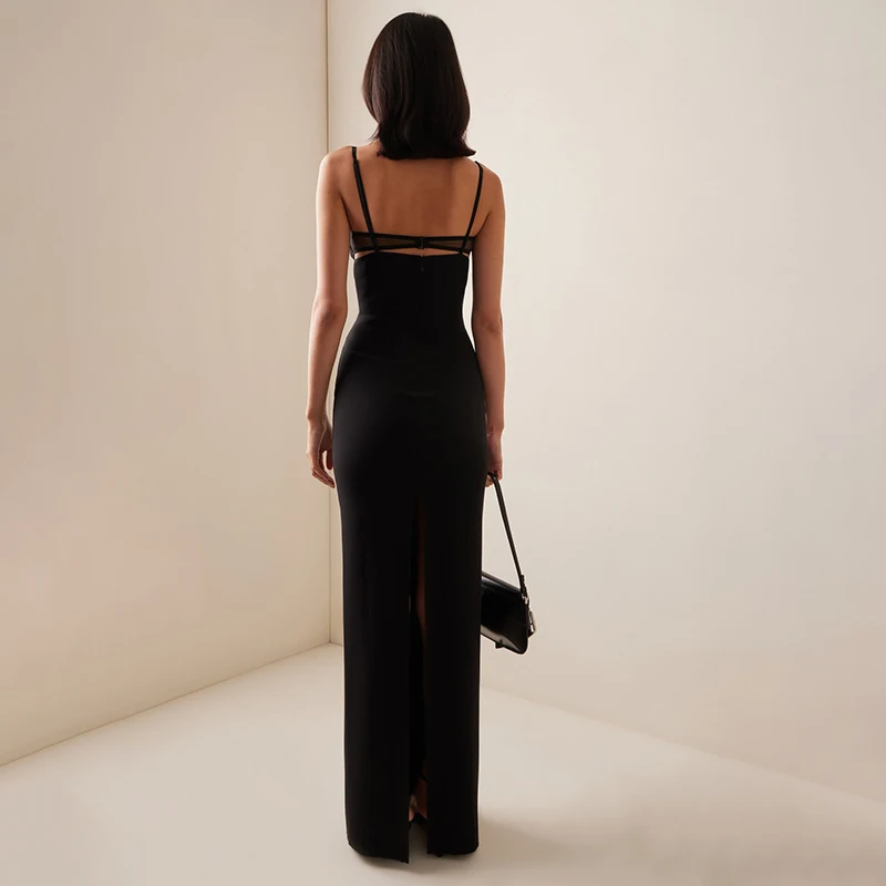 ZYHT 70077 Strapless Hollow Cut Out Maxi Black Party Evening Dress Knitted Jersey Stretchy Backless Dresses