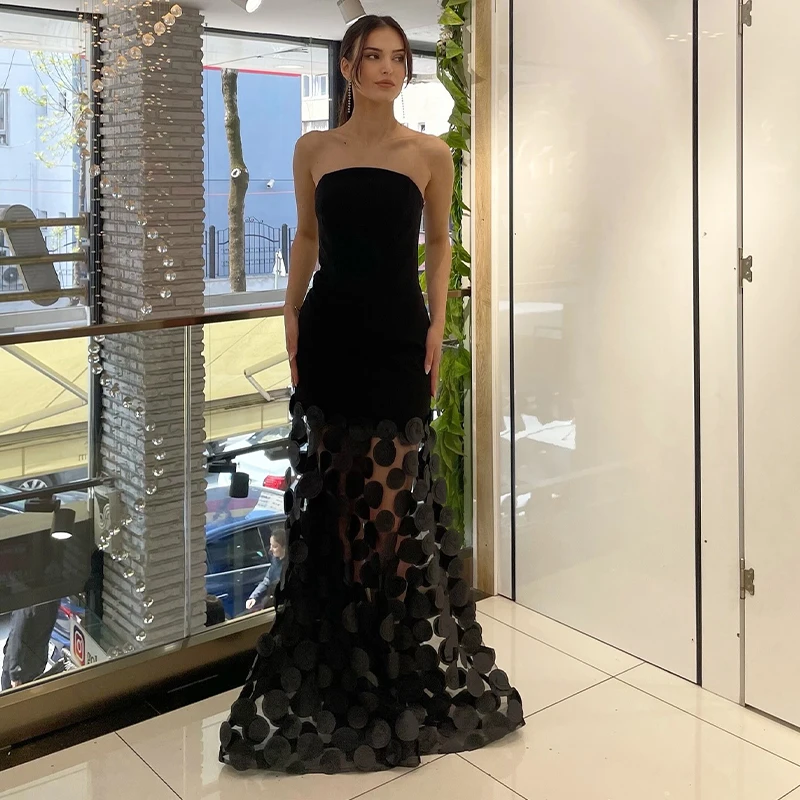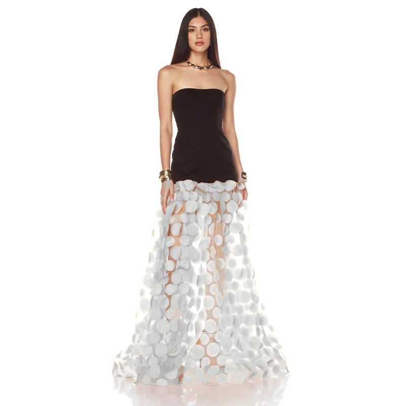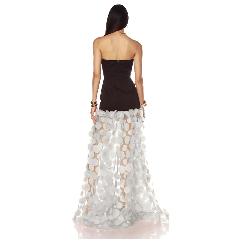 ZYHT 70075 Spring Summer New Black and White Strapless Dress with 3D Floral Puff Skirt for Evening Weddings and Events