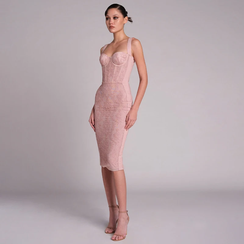 ZYHT 70065 Summer New Retro French Lace Strap Sexy Long Slim European and American Black Pink White Bodycon Corset Dress