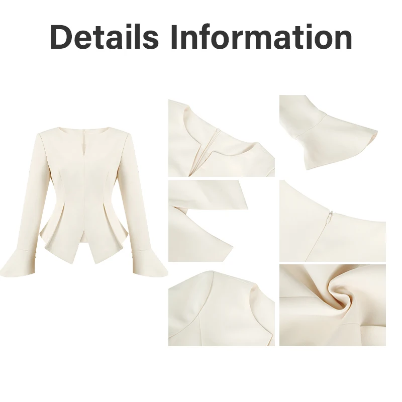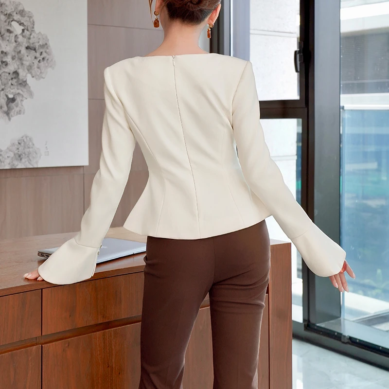 ZYHT 35243 Long Women's blazer Apricot Peplum Blazer with Flared Cuffs V-Neck Slim Fit Tailored Jacket for Office