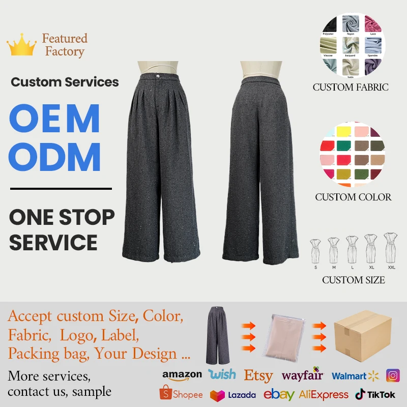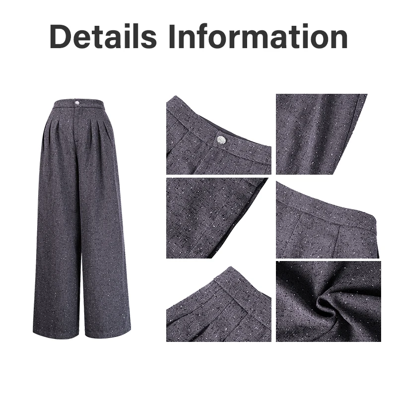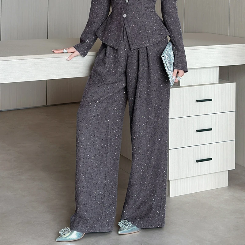 ZYHT 35365 Pants Women Gray Sparkly Wide-Leg Pants with High Waist & Pleated Design Pants for Women Women Pant
