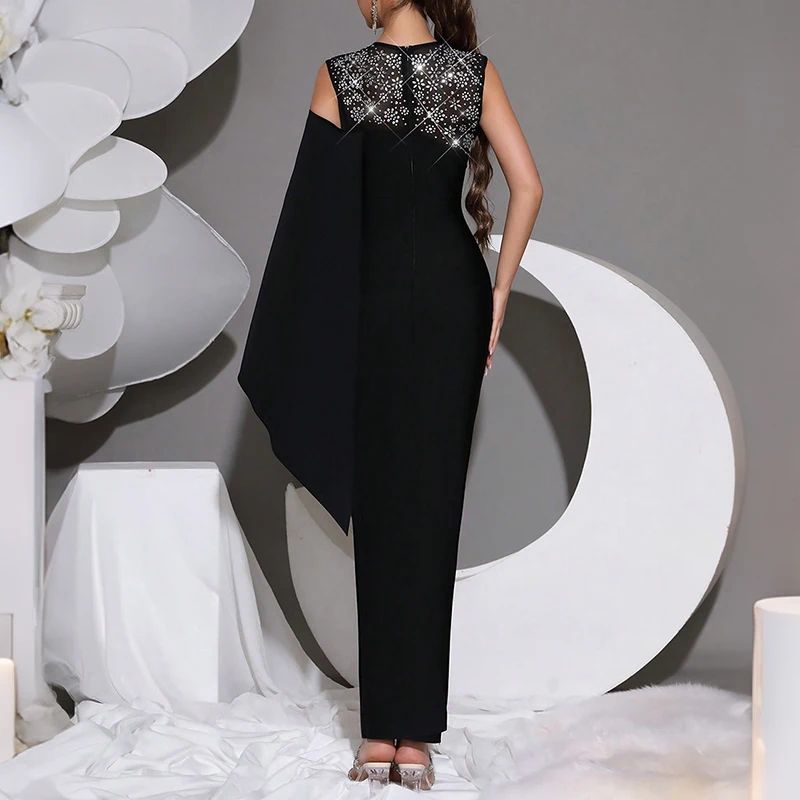 ZYHT 70053 Plus Size Lady Elegant Formal Long Dubai Women's Gala Rhinestones Black Sparkly Cocktail Evening Dresses with Stones