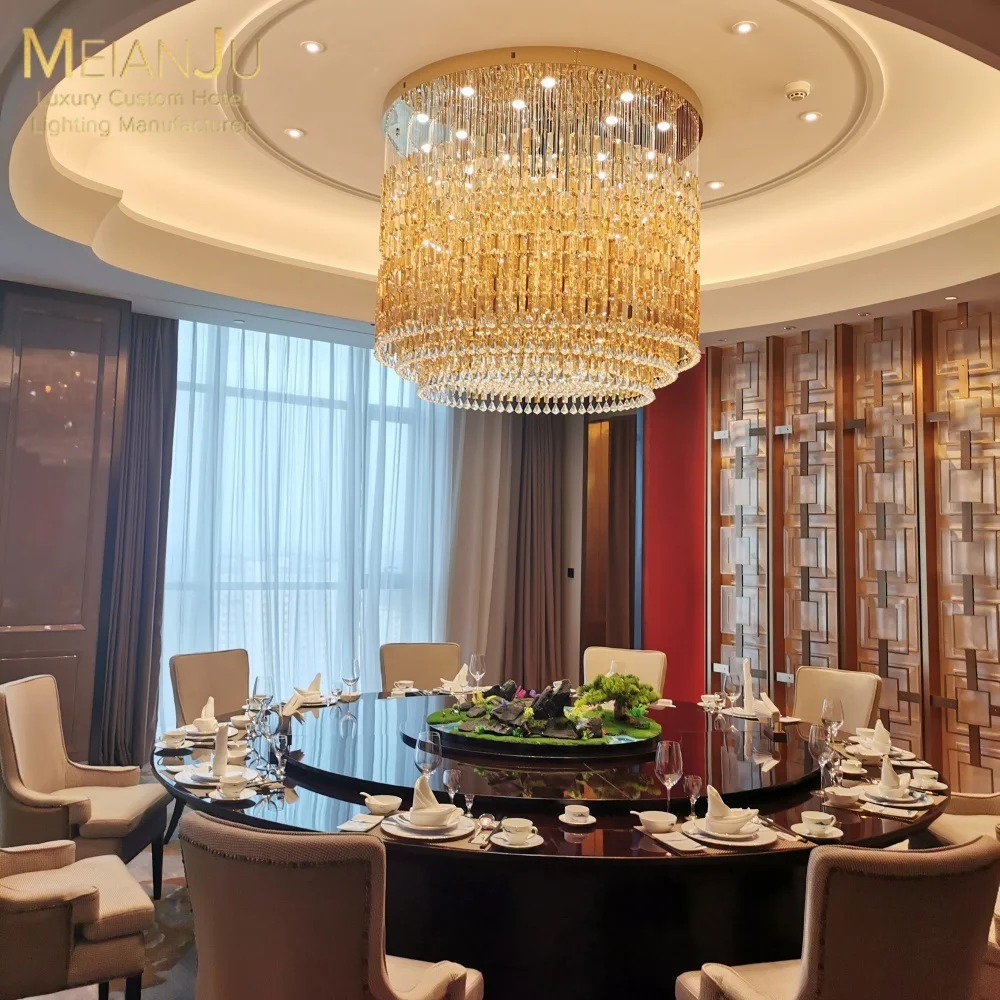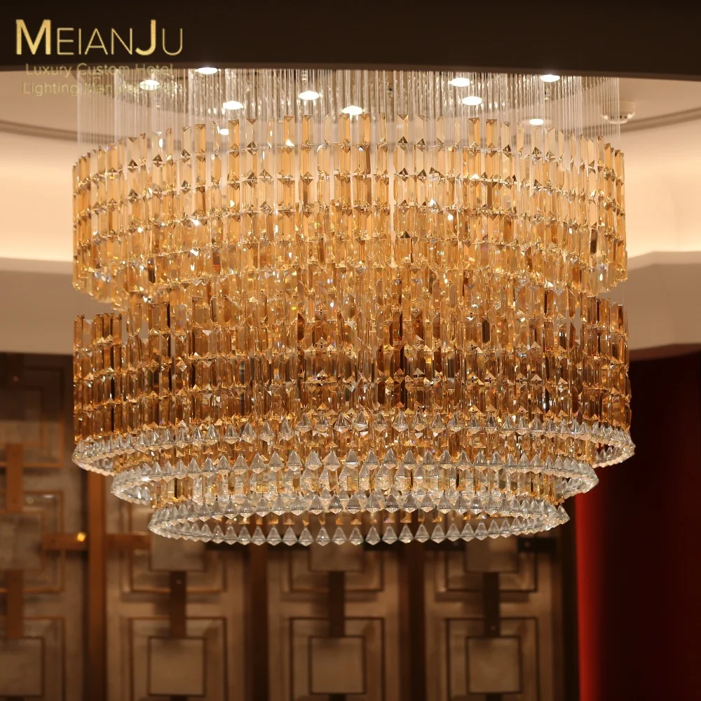 Wedding Hall Chandelier Hotel Hanging Pendant Light Customized Amber Crystal Chandelier Lighting for Lobby