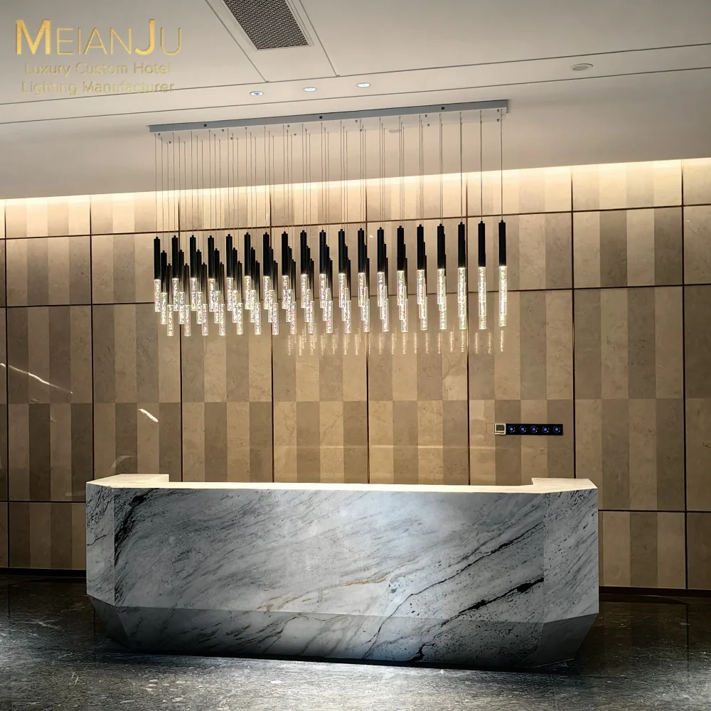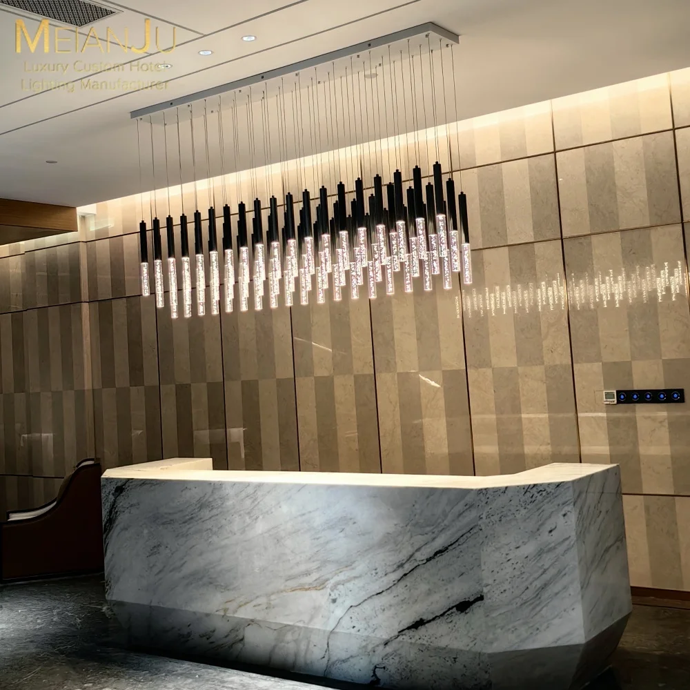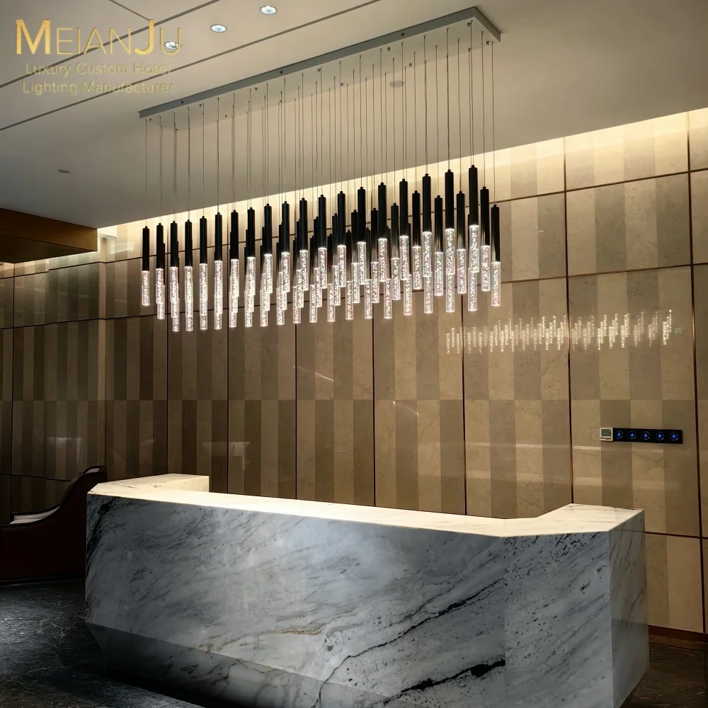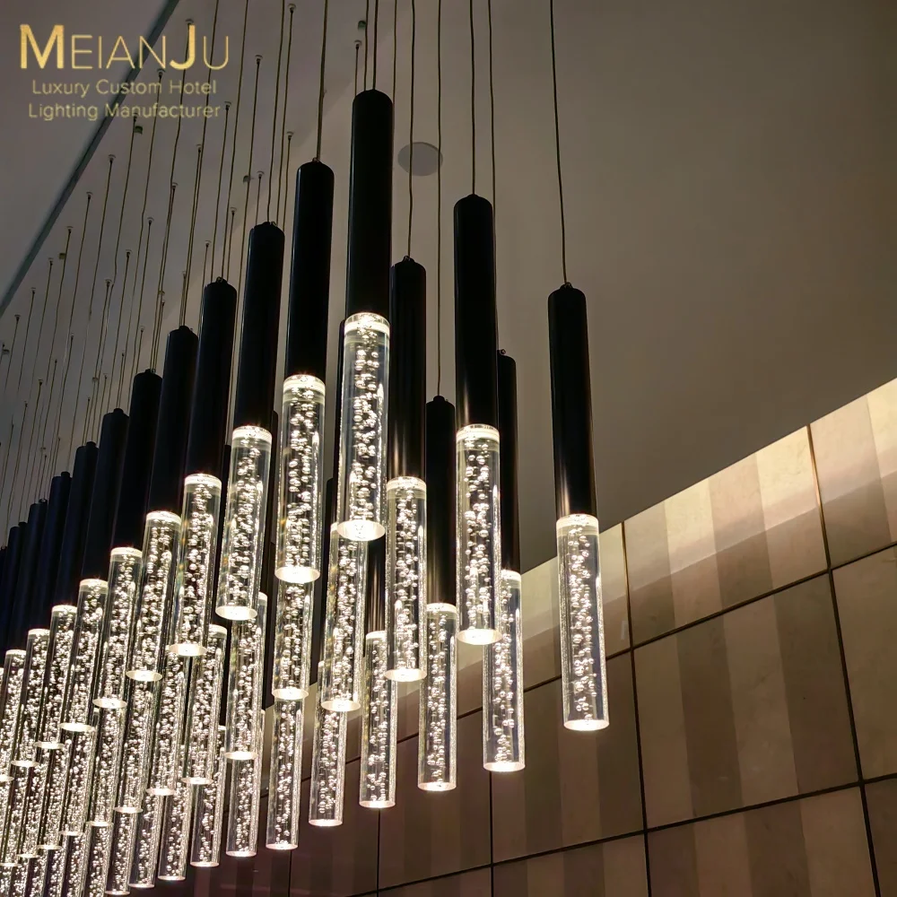 Luxury Style Stainless Steel Body Ceiling Chandelier with Frosted Crystal Bubble Column for Hotel Projects
