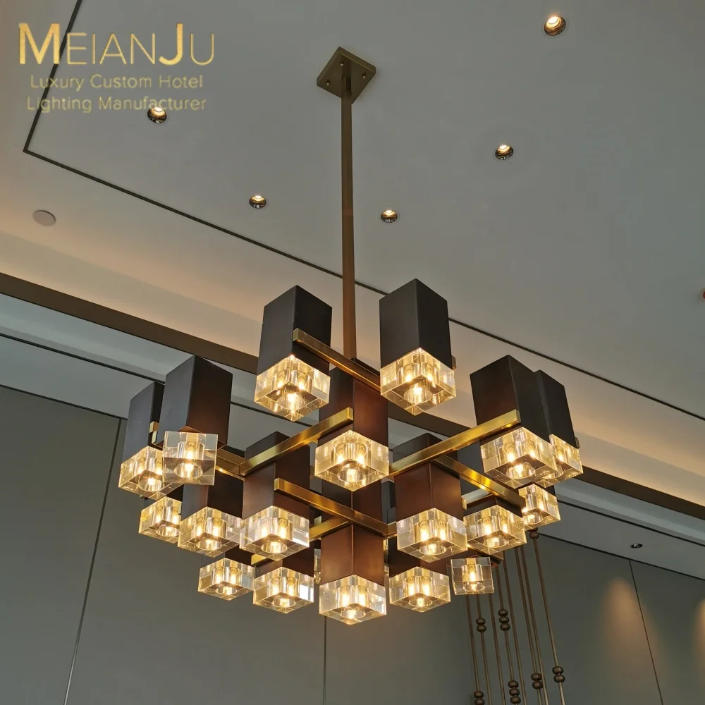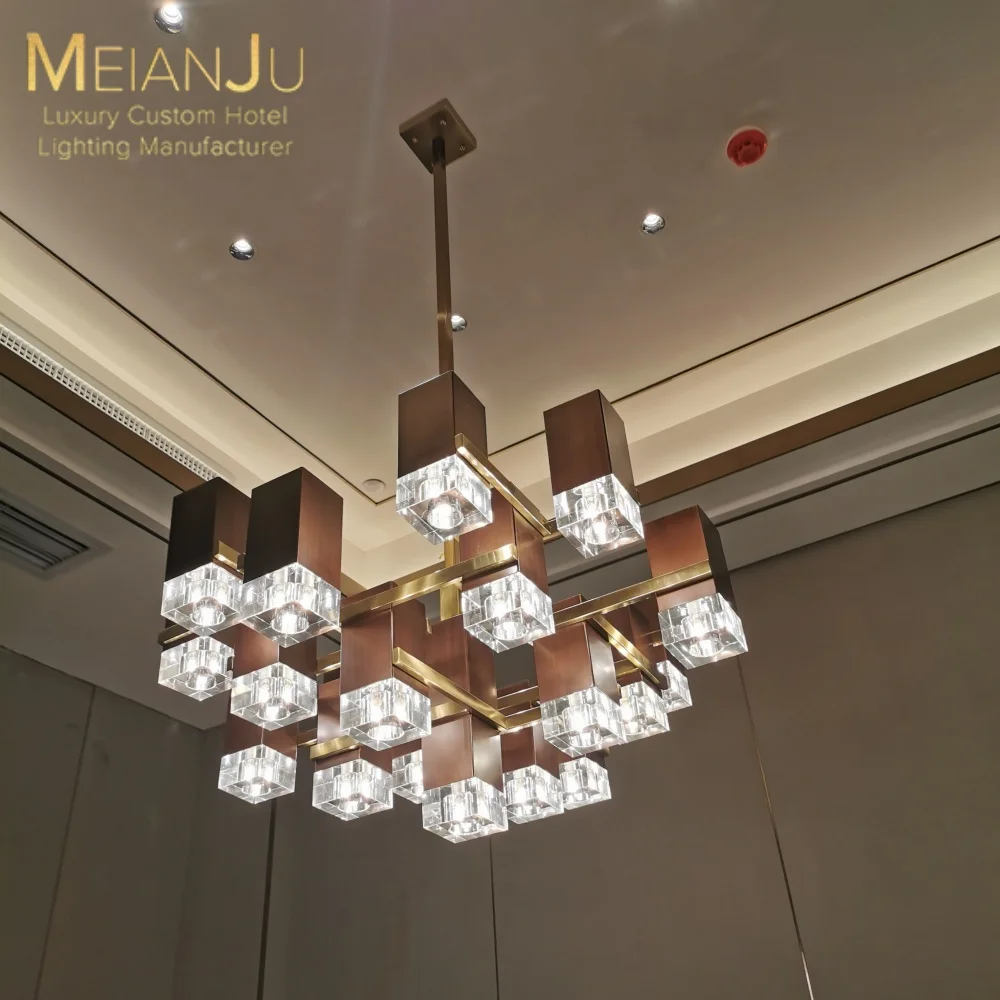 Wedding Hall Chandelier Hotel Hanging Pendant Light Customized Amber Crystal Chandelier Lighting for Lobby