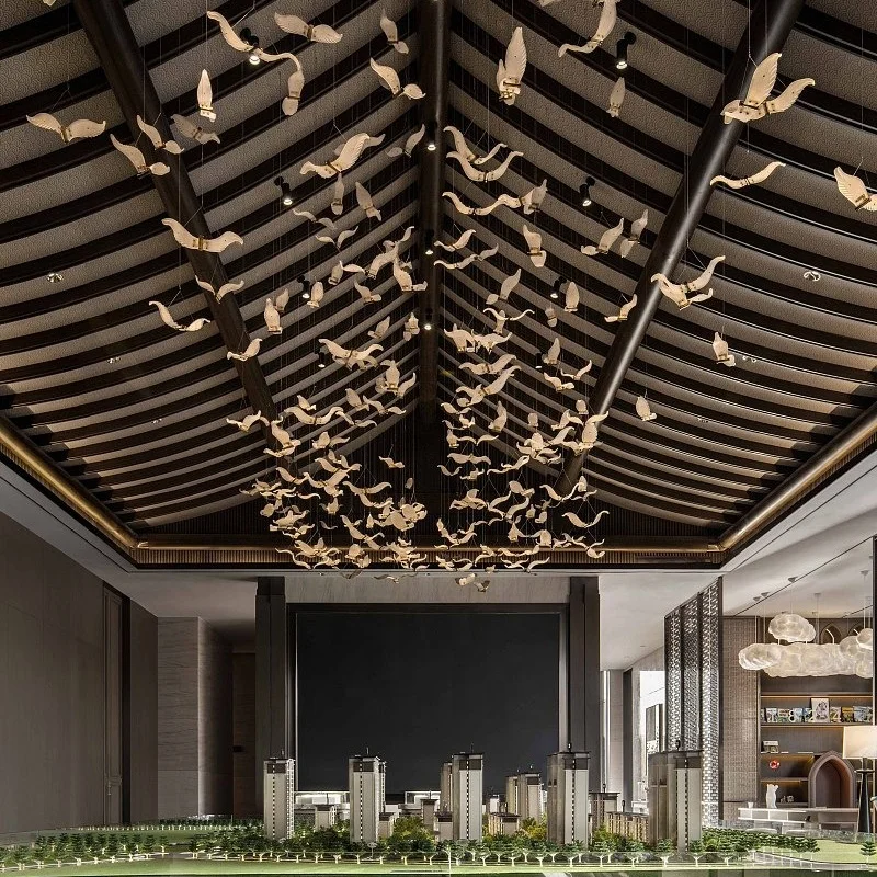 Custom Non-Standard Hotel Lobby Restaurant Banquet Hall KTV Private Room Chandelier Fixtures Middle Glass LED 5-Year Warranty