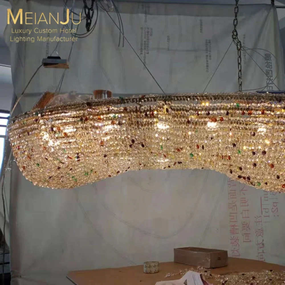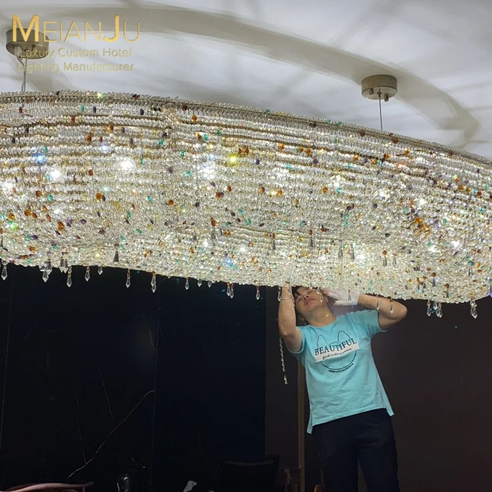 Wedding Hall Chandelier Hotel Hanging Pendant Light Customized Amber Crystal Chandelier Lighting for Lobby