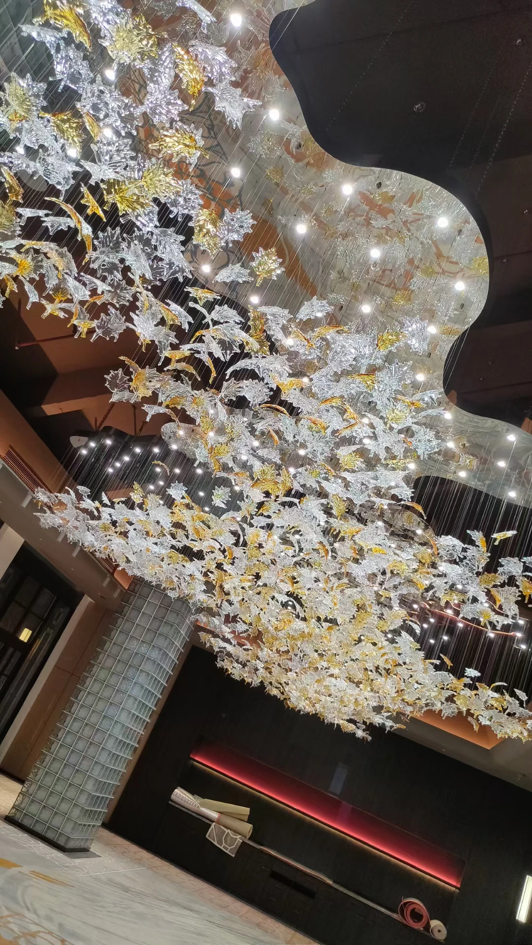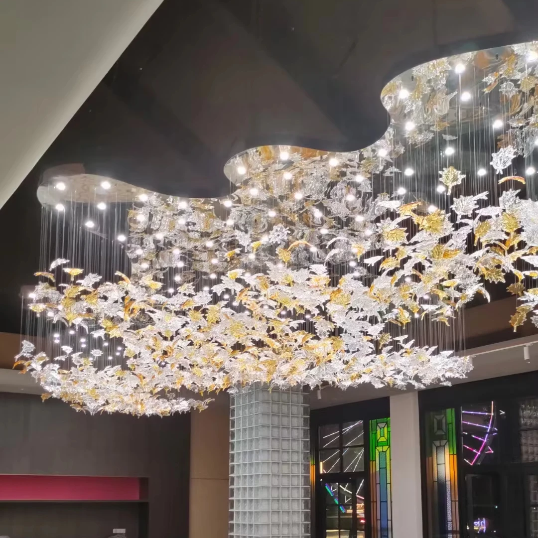 Premium Modern Custom Crystal Chandelier Luxury Ceiling Bedroom Maple Leaf Glass Hanging Pendant Lamp Light for Hotels