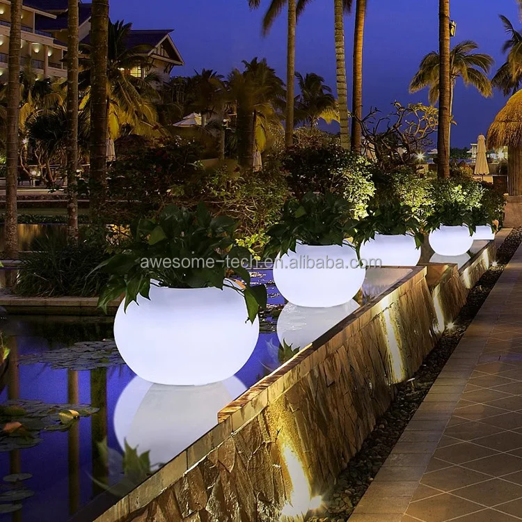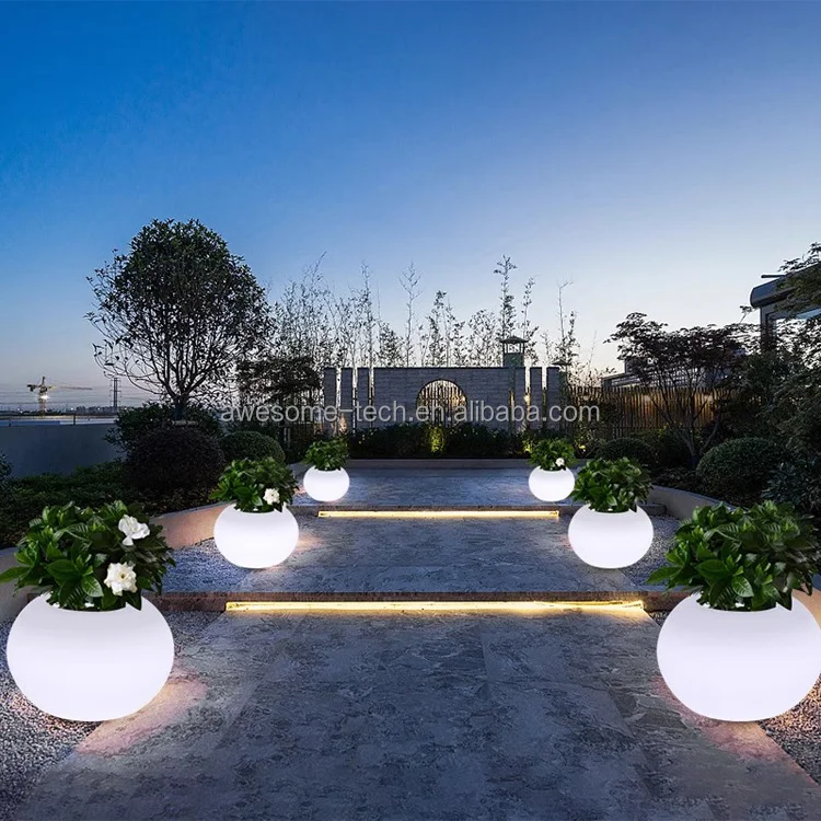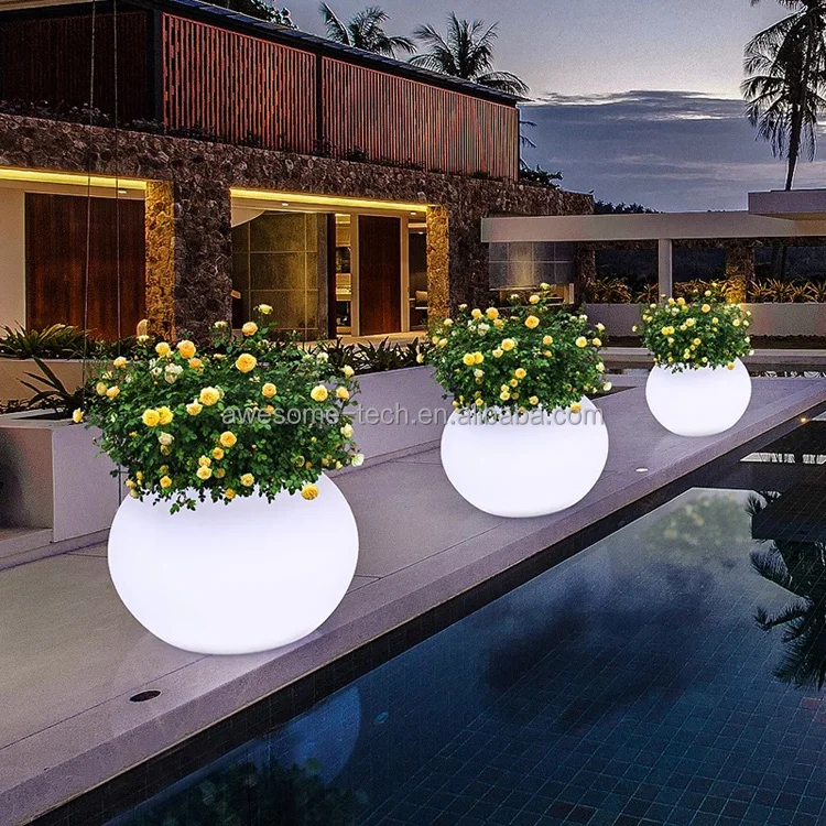 Smart Remote Control LED Illuminated Round Ball Shaped Flower Vase Modern Planters and Pot Trays