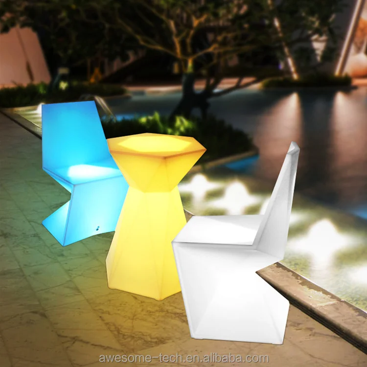 Modern Remote Controlled LED Lighted Plastic Stool Color-Changing Bar Chair for Hotels