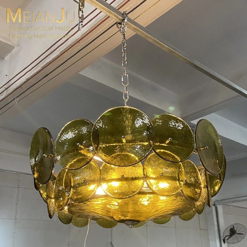 Zhongshan Modern Green Concave Glass Chandelier Premium Hanging Pendant Light for Hotel Living Room Green Texture Lighting