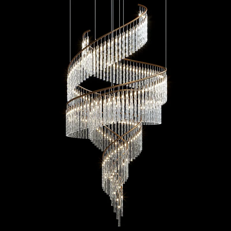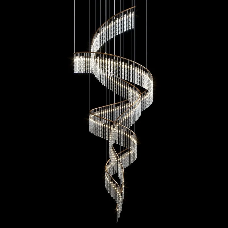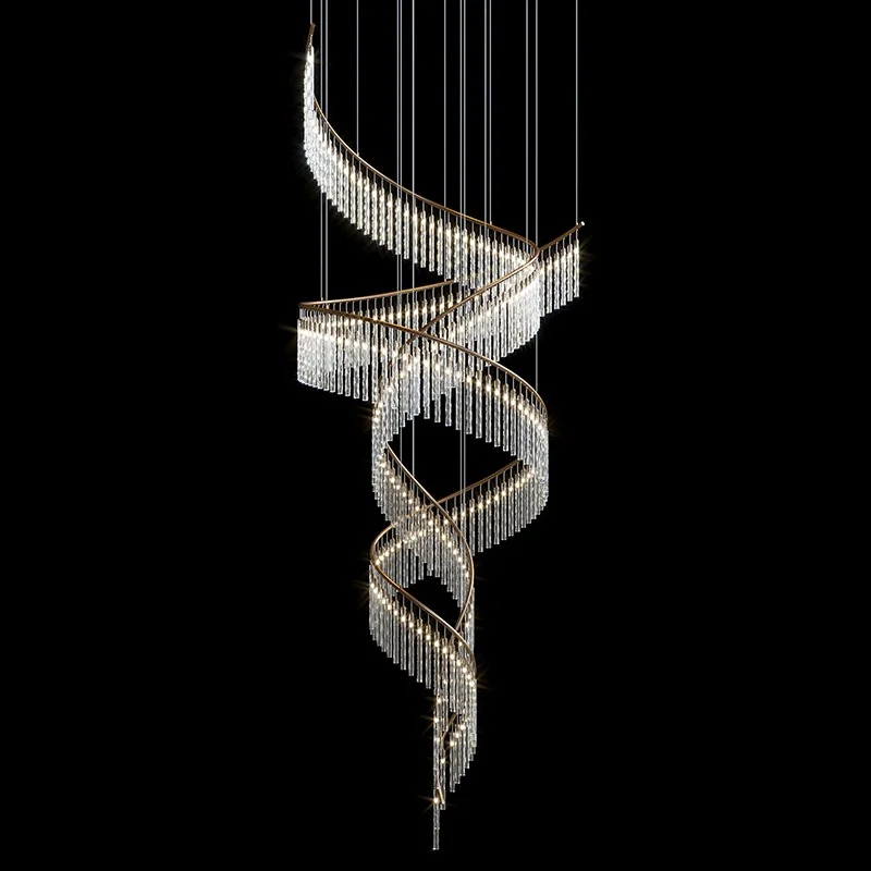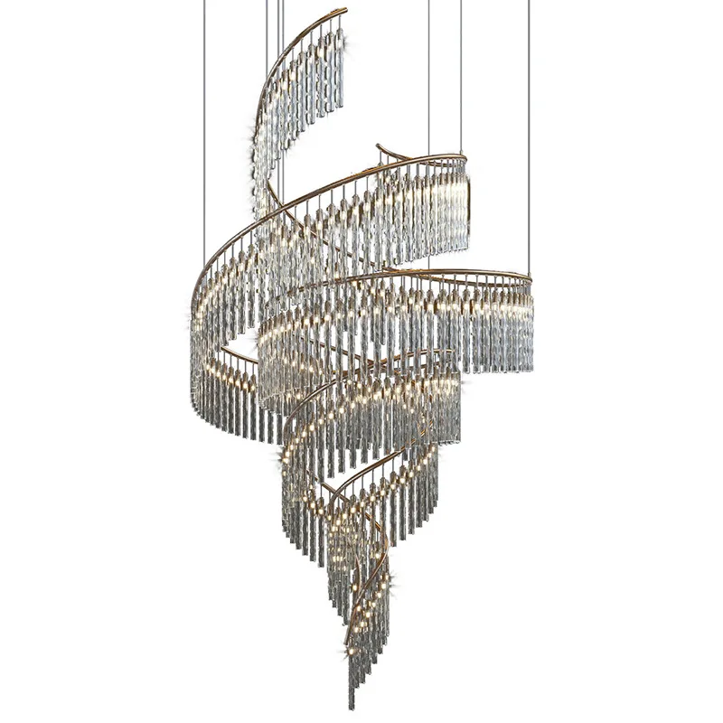 Zeal Lighting Long Stairwell Hanging Pendant Light Staircase Villa Duplex Stair High Ceiling Crystal Chandelier