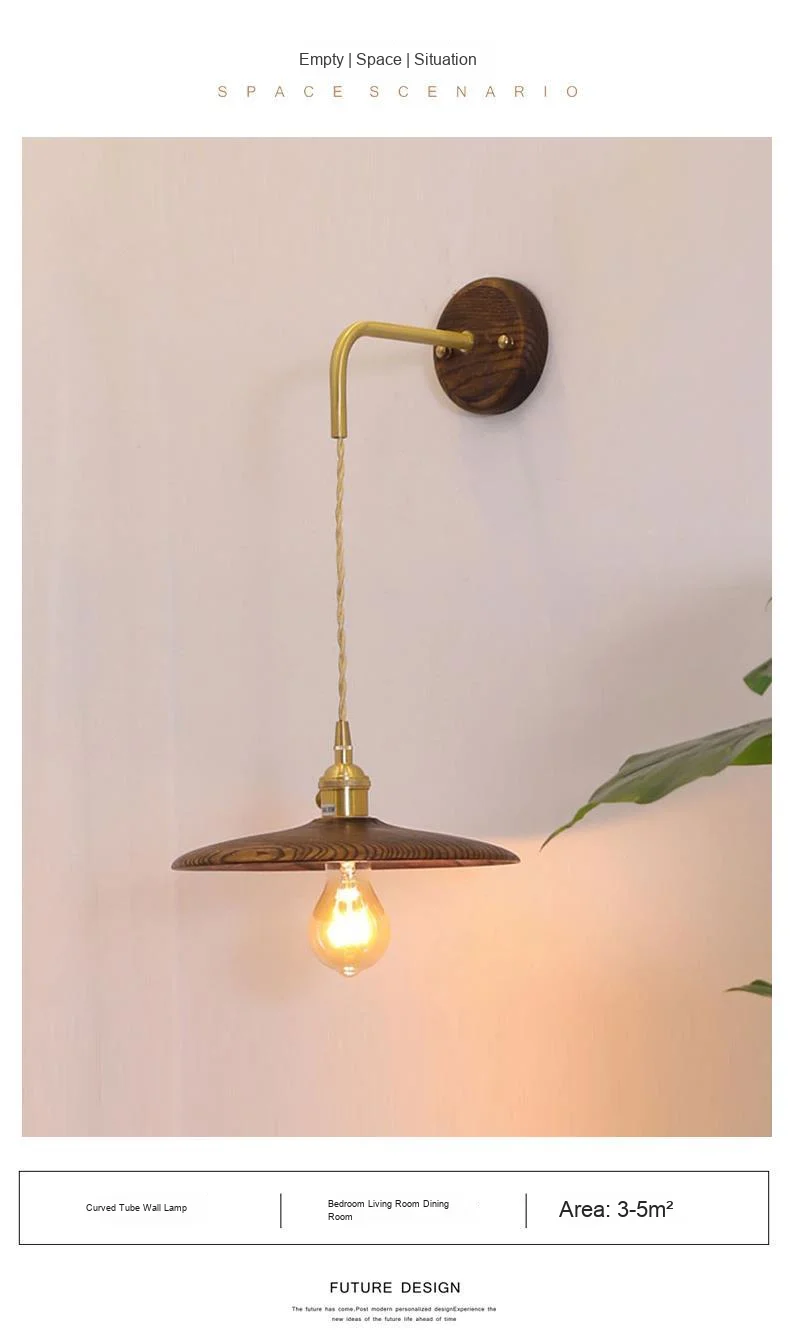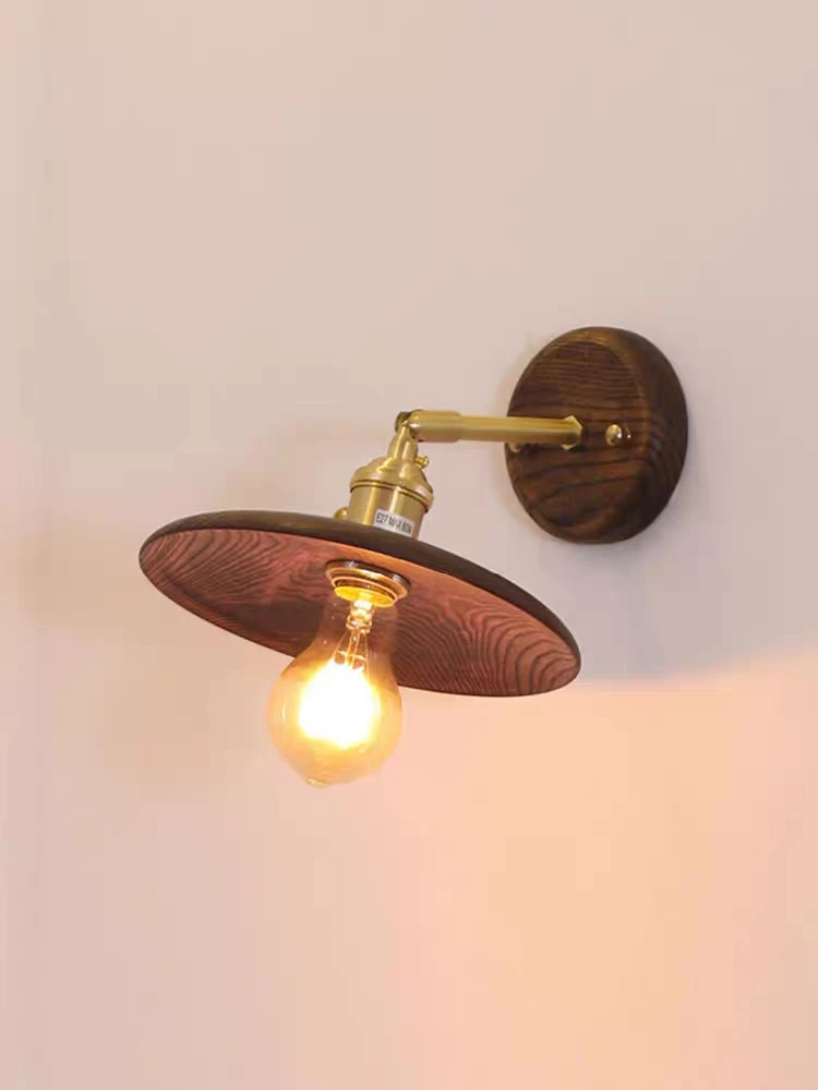 Nostalgic Walnut Wood Solid Wood LED Light Source Retro-style Wall Lamp with Bedside Switch for Bedroom Application