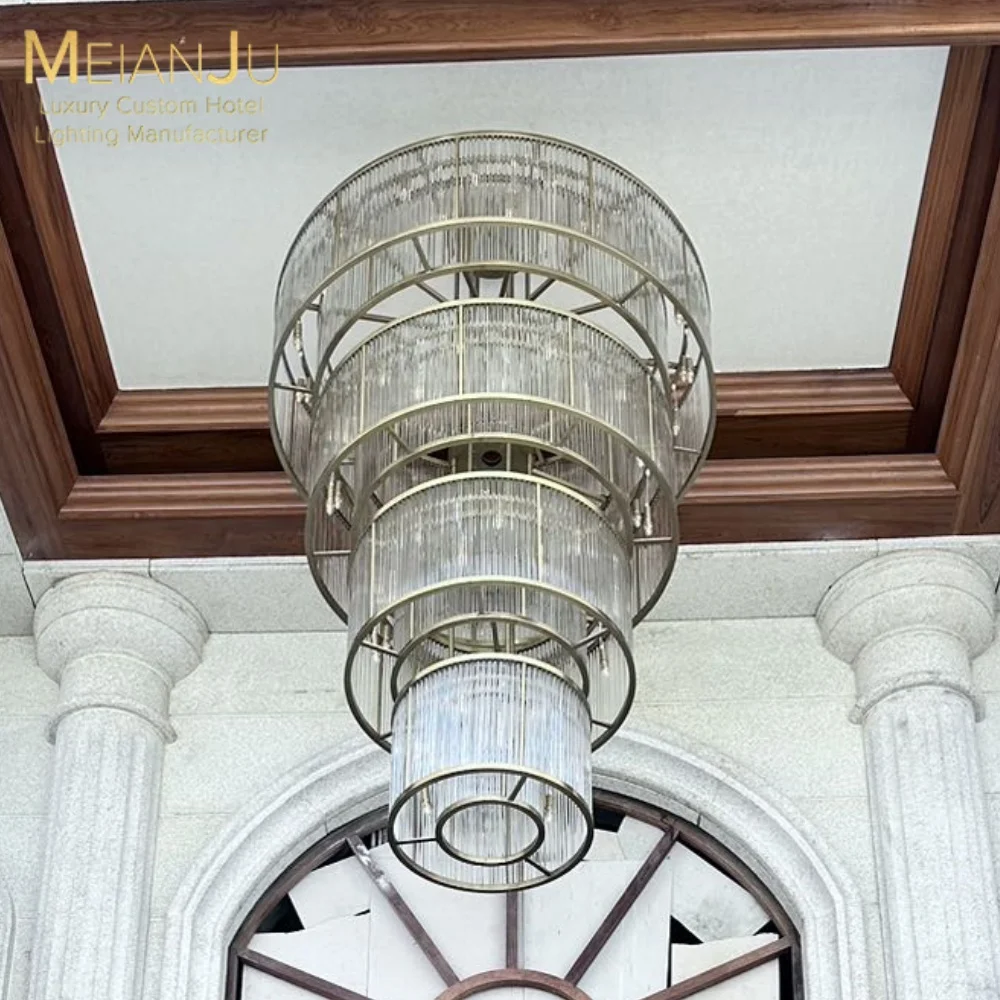 Zeal Lighting Hotel Lobby Hall Decorative Large Hanging Light Customized Long Gold Crystal Elegant Chandelier