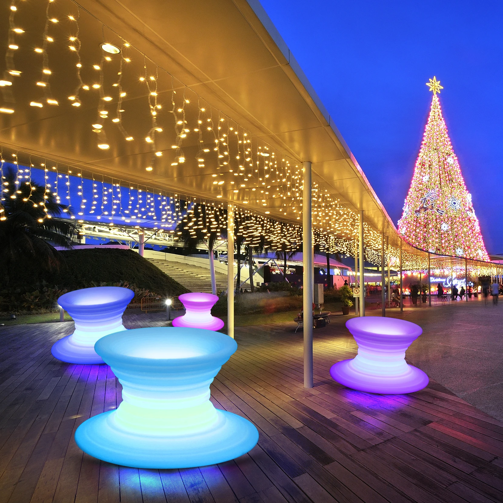 Modern Outdoor Plastic LED Roly-Poly Chair Illuminated Glowing Tumbler Bar Seat for Adults for Hotels and Parks