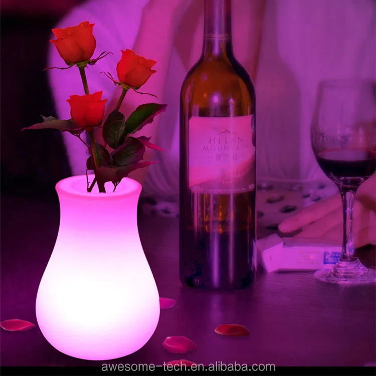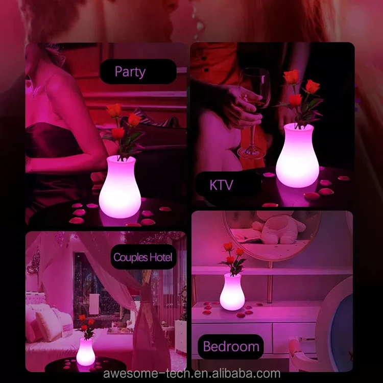 Modern 16-Color LED Small Vase Night Light Battery Remote Controlled for Bedroom Middle Table Colorful Mood Room Decor