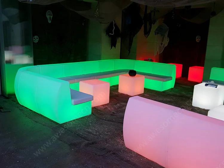 Contemporary LED Bar Furniture Set Modern Lounge Table Chair Sofa Stool Stylish Plastic for Outdoor Garden Night Club Party