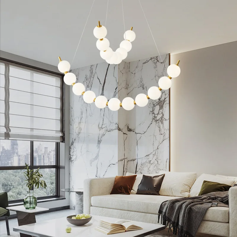 JACKSUN Modern Curved String Chandelier Copper PMMA High Transmittance Shade for Living Dining Room Bedroom