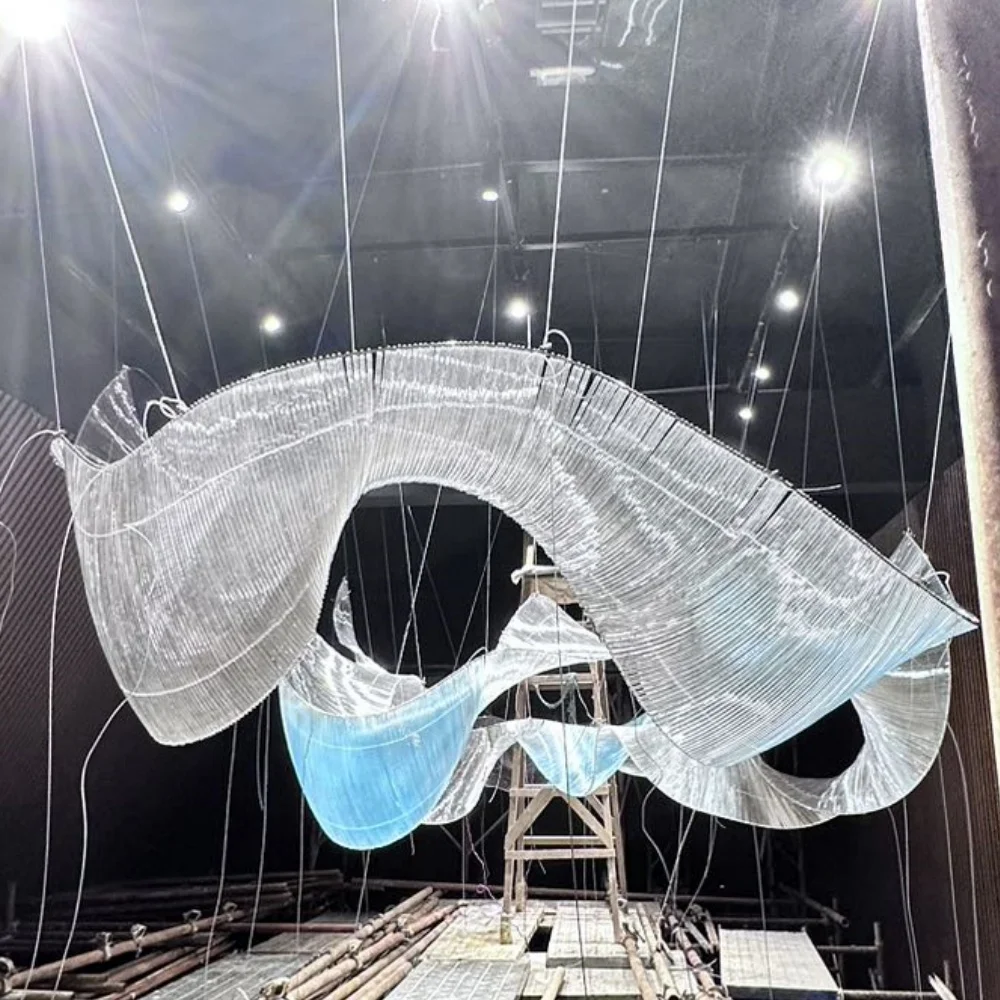 Ombre Color Glass Stainless Steel Chandelier Light Art Nouveau Style Freeform Bend Design for Hotel Villa Pool