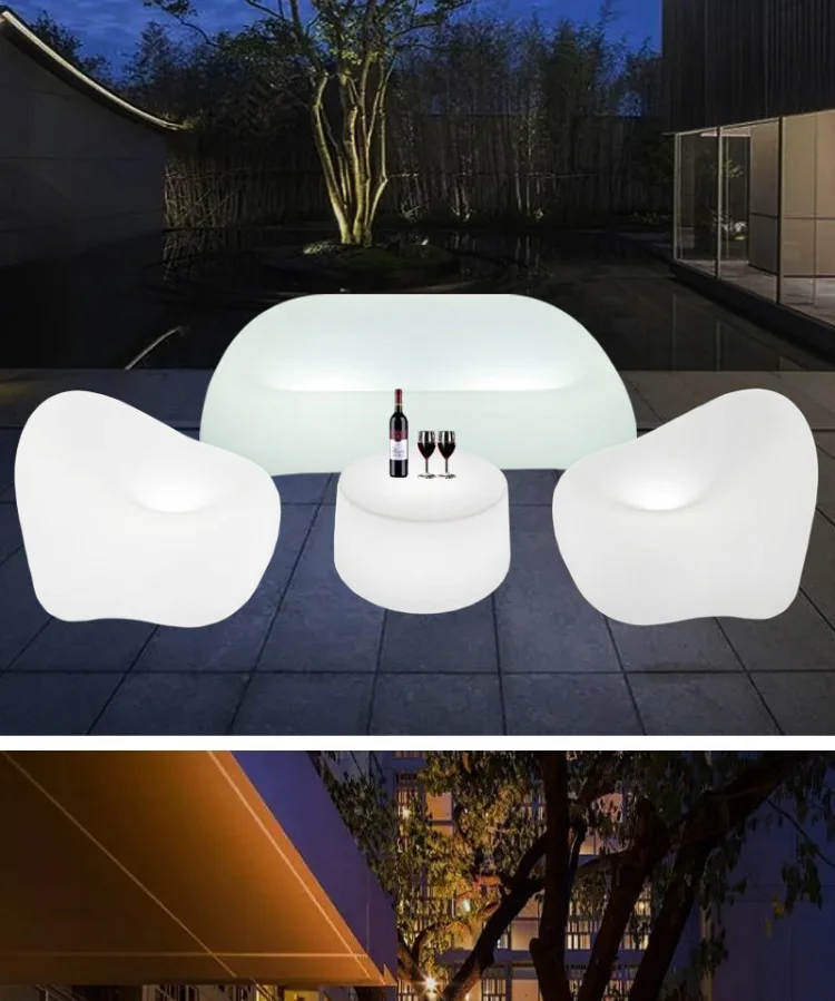 Contemporary LED Bar Furniture Set for Outdoor Garden Night Club Party Events Modern Lounge Table Chair Sofa Stool Light Stylish