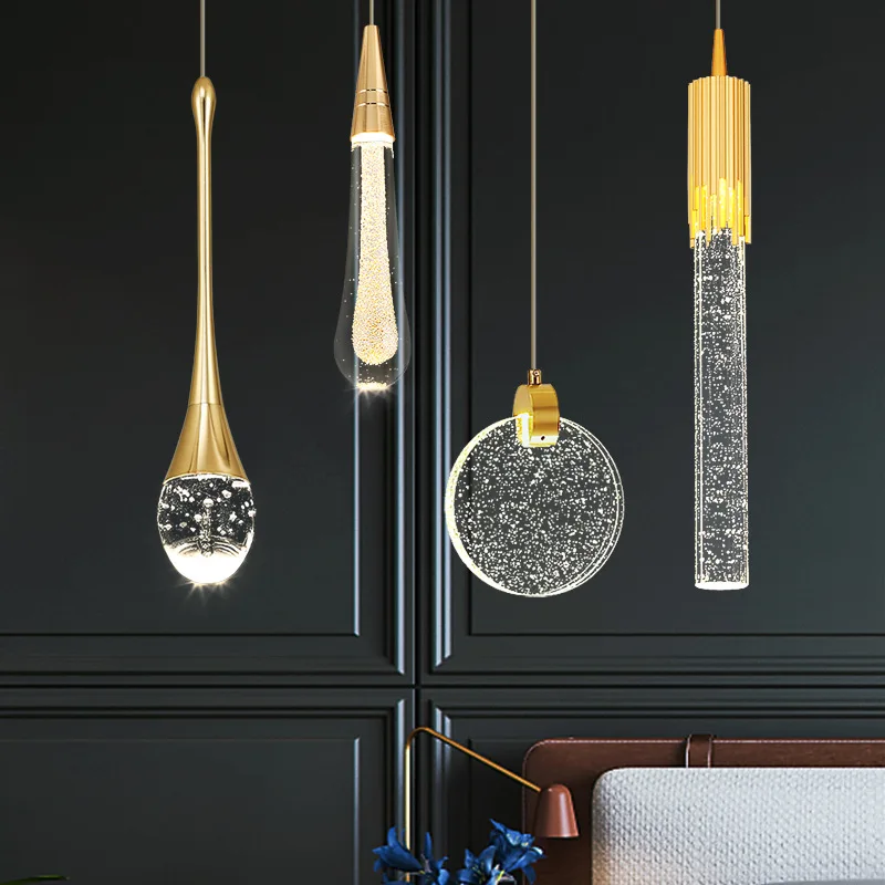JACKSUN Nordic Style Rain Drop Crystal Chandelier Small Size Hanging Light Fixture Background Wall Bedside Led Pendant Light