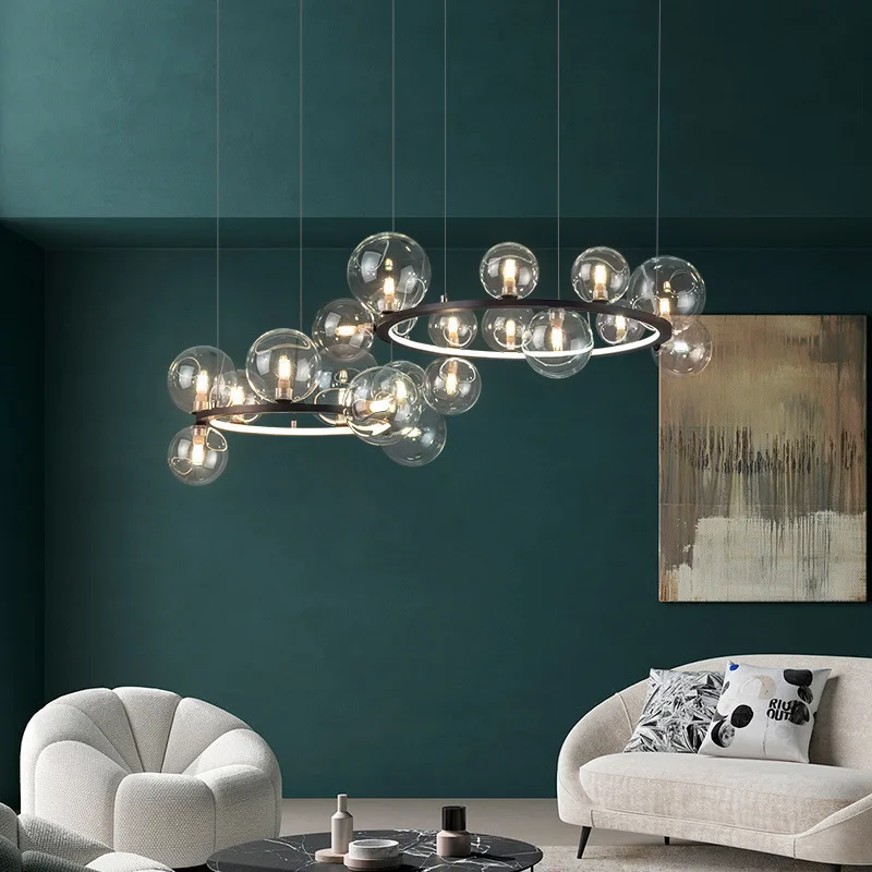 JACKSUN Nordic Modern Minimalist Dining Room Pendant Lamp Creative Bedroom Pendant Light Bar Counter Art Glass Molecular Lamp