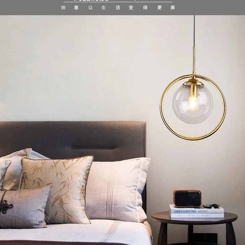 JACKSUN Luxury Modern Round Glass Ball Pendant Light Simple E14 Bedroom Dining Room Chandelier in Amber Color Pendant Lamp