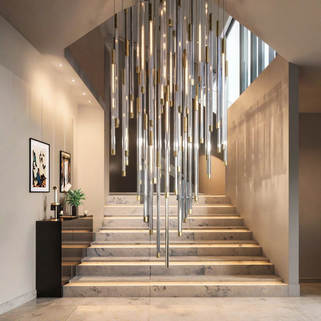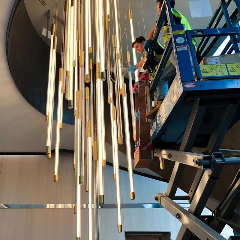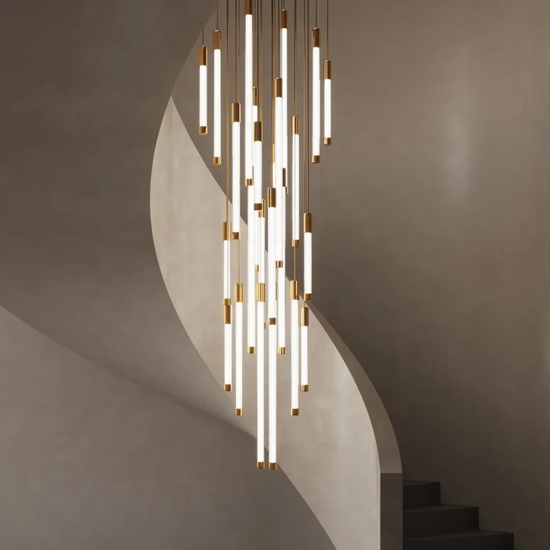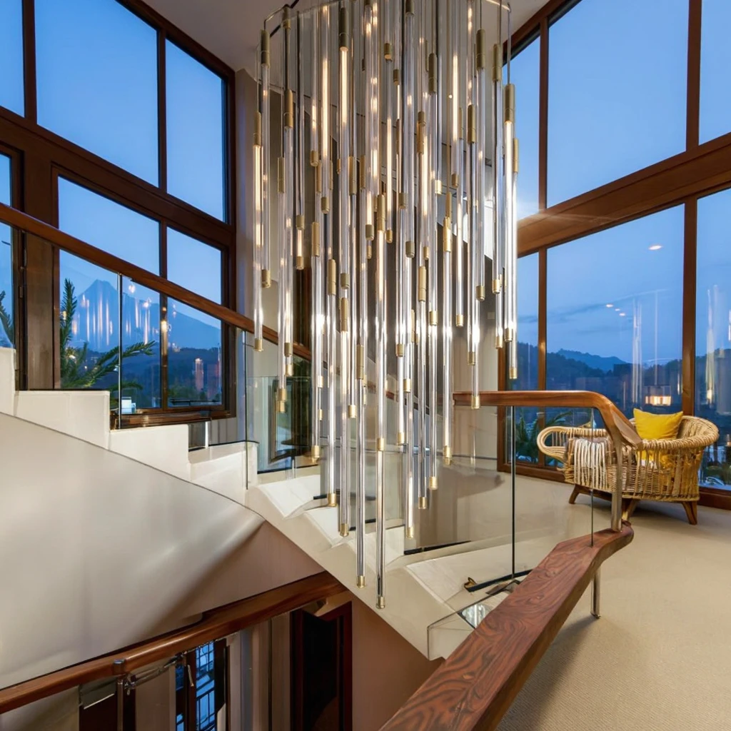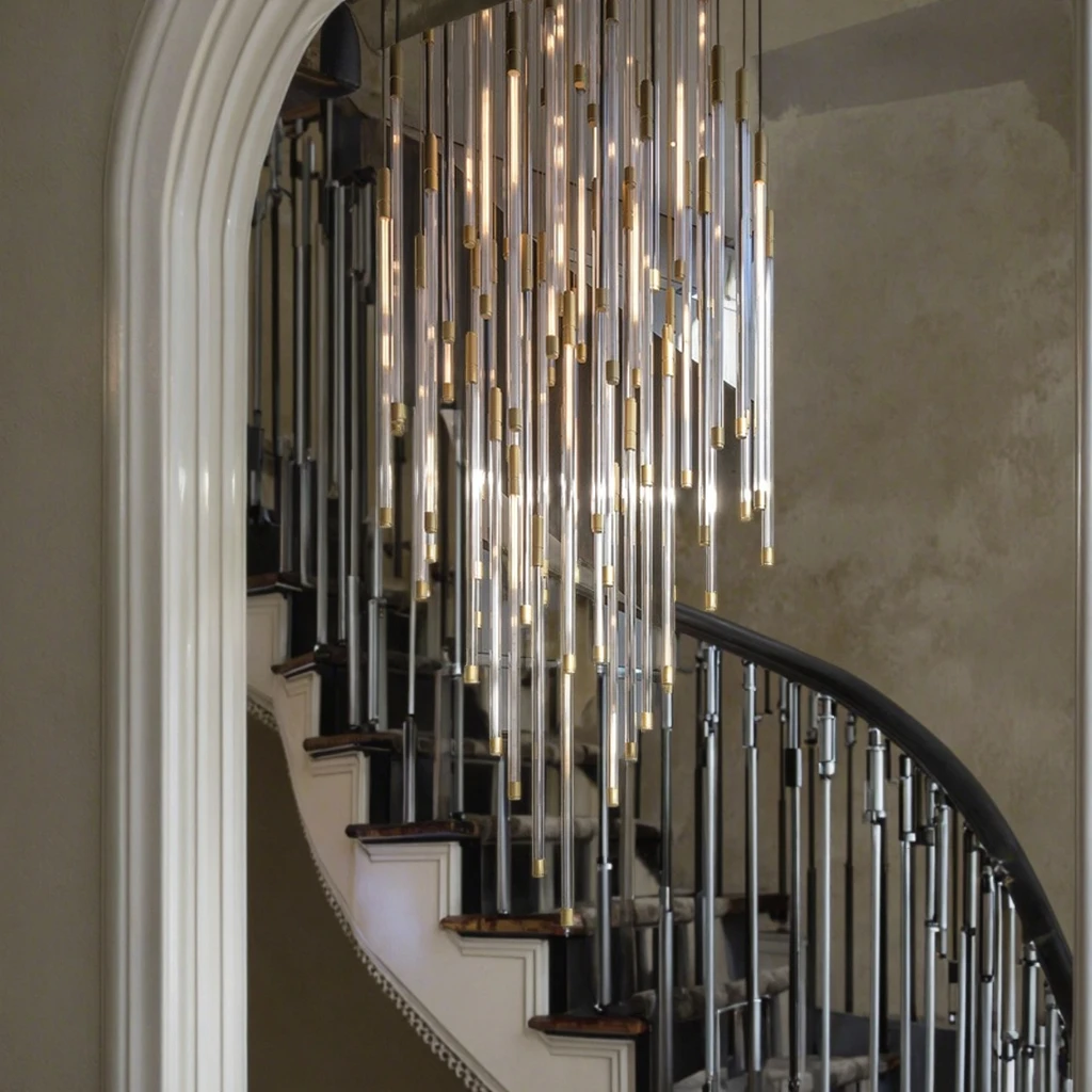 Zeal Lighting Long Stairwell Hanging Pendant Light Staircase Villa Duplex Stair High Ceiling Crystal Chandelier