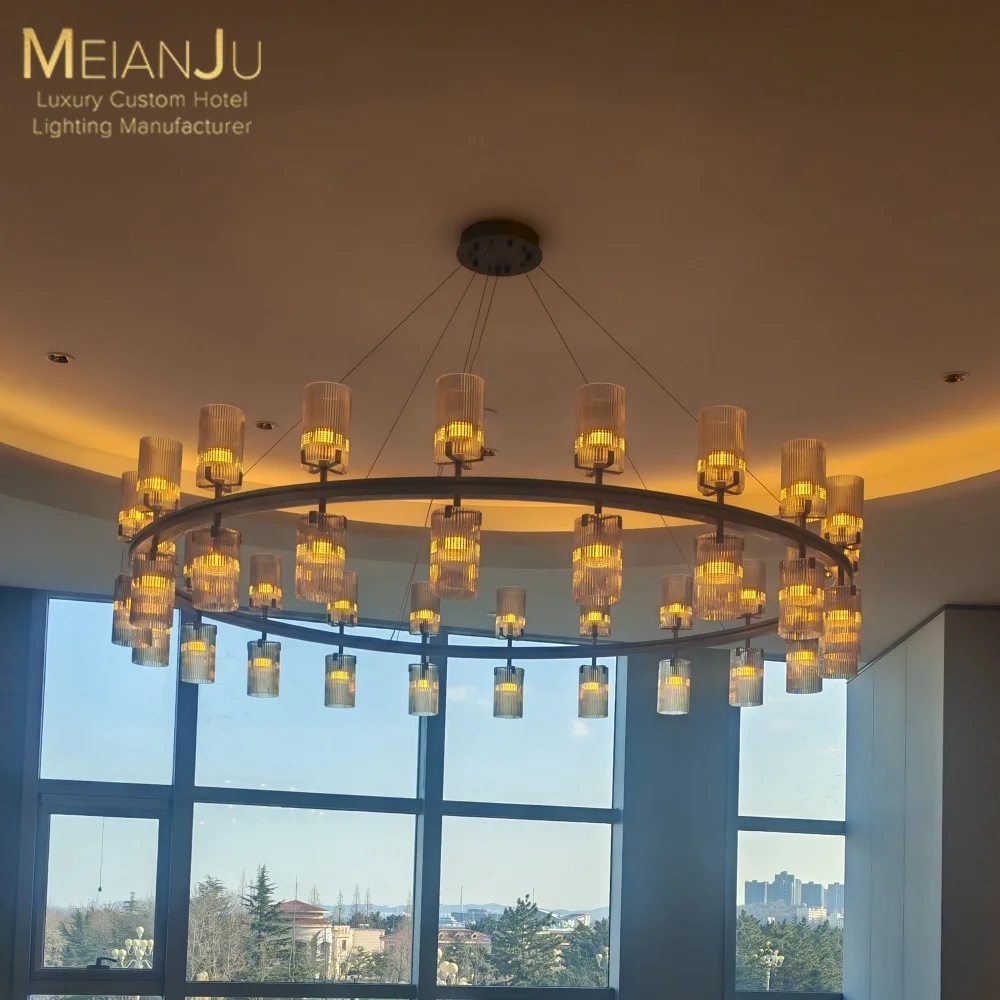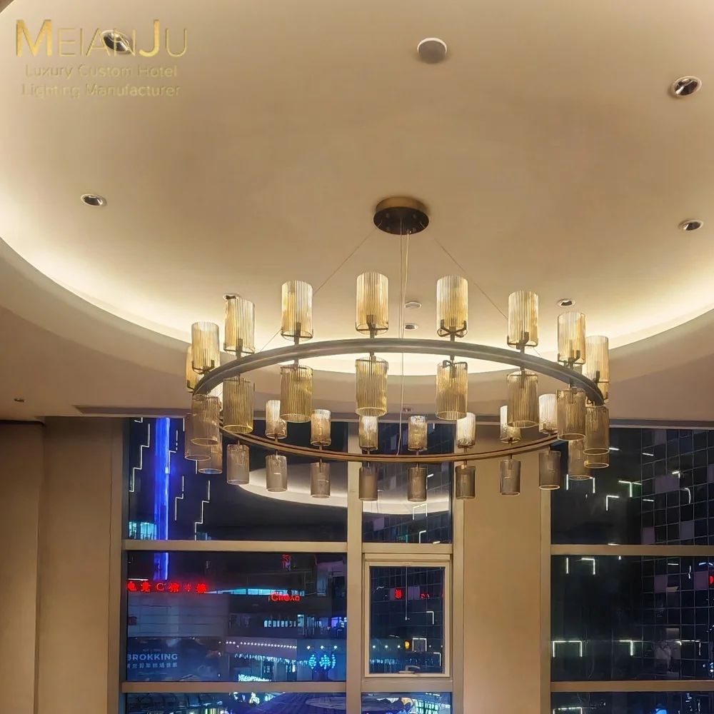 Wedding Hall Chandelier Hotel Hanging Pendant Light Customized Amber Crystal Chandelier Lighting for Lobby