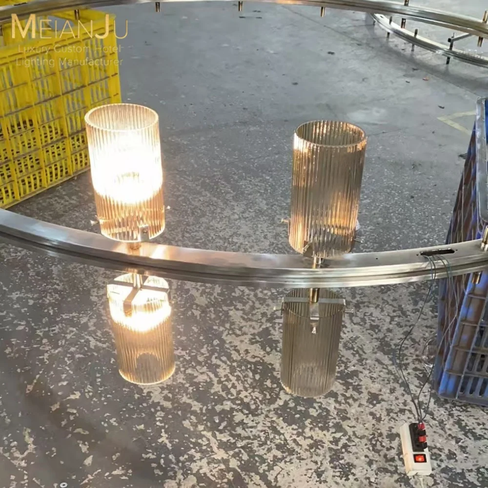 Elegant Minimalist Style Artisan Glass Chandelier with Striped Glass Accents for Hotel's Private Dining Room New Collection