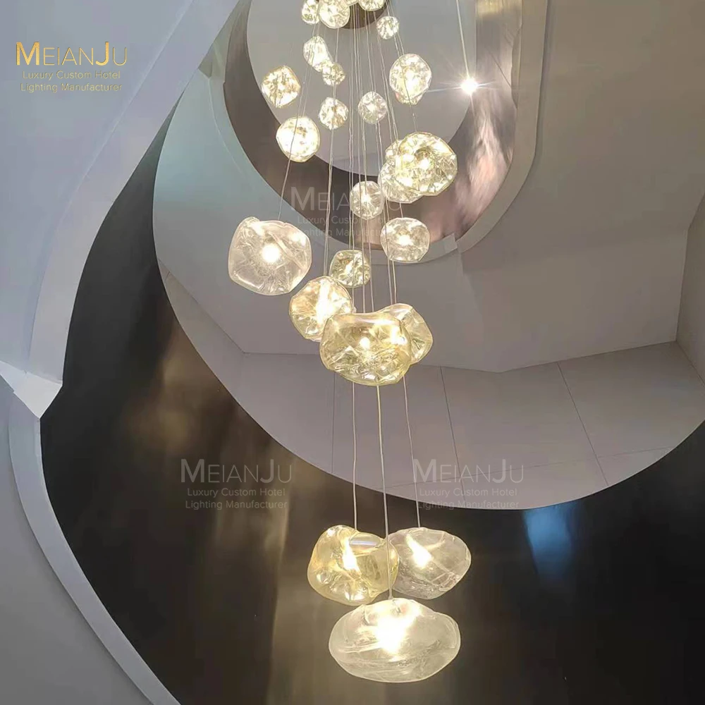 Zeal Lighting Long Stairwell Hanging Pendant Light Staircase Villa Duplex Stair High Ceiling Crystal Chandelier