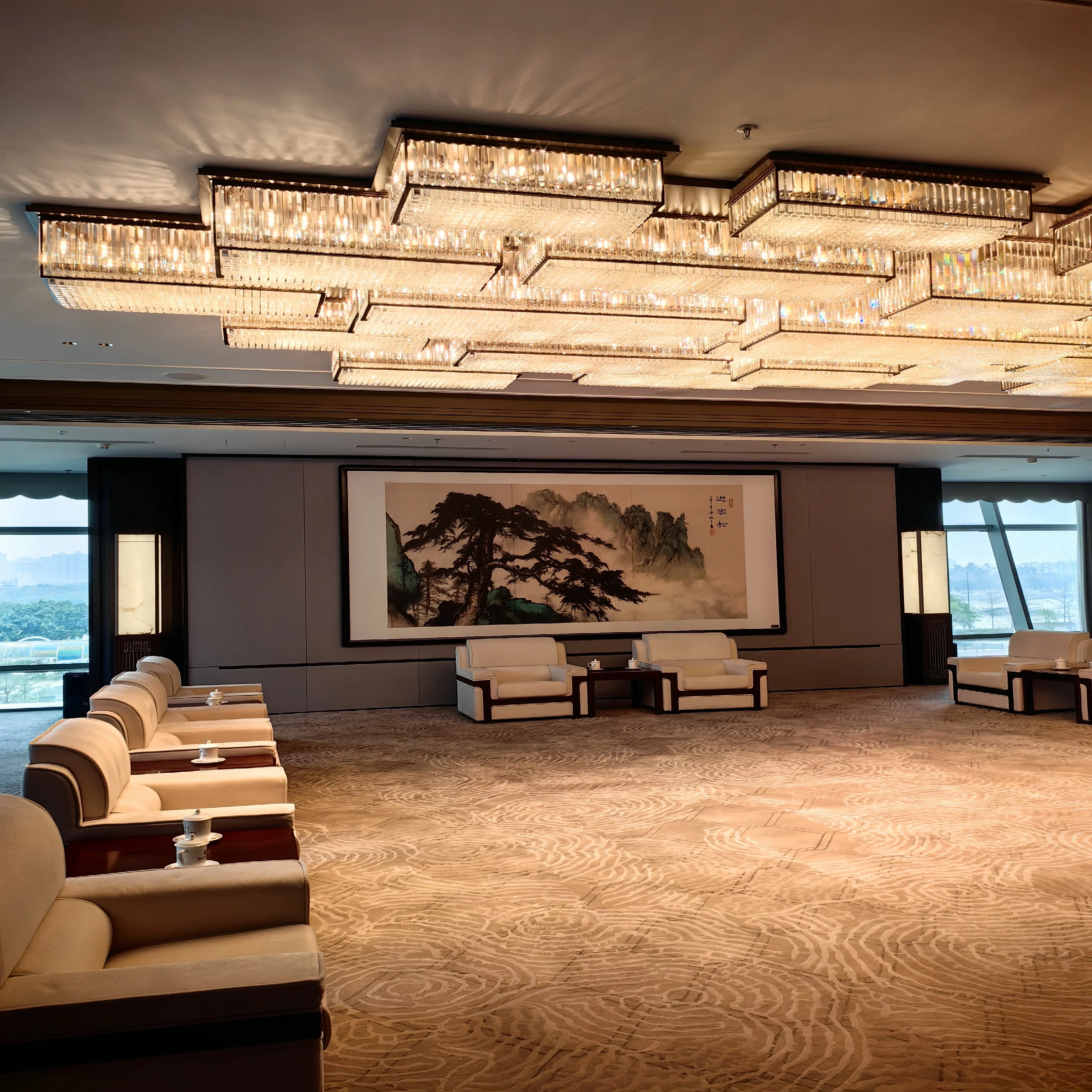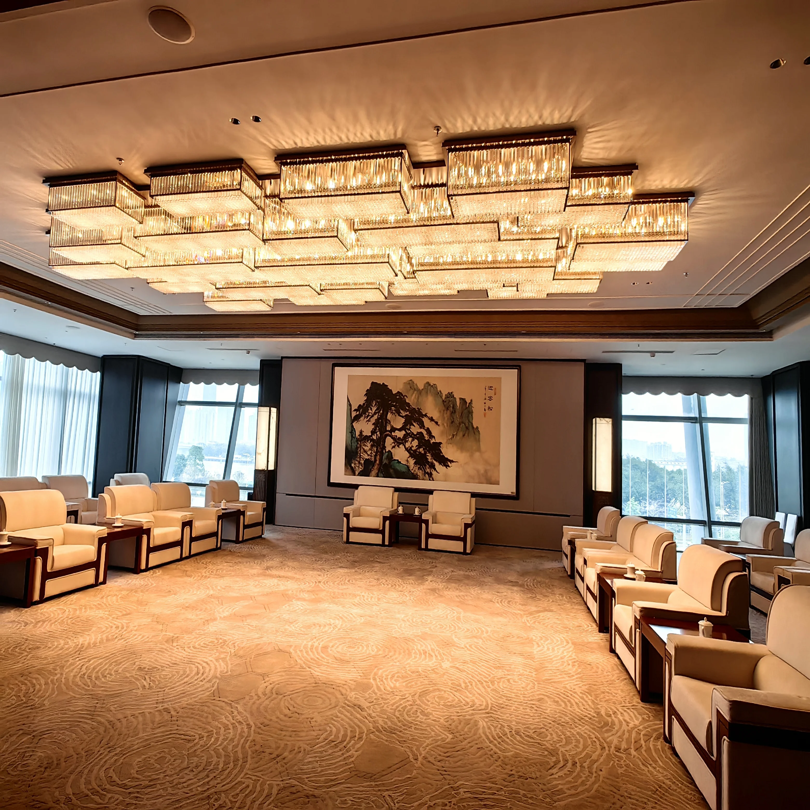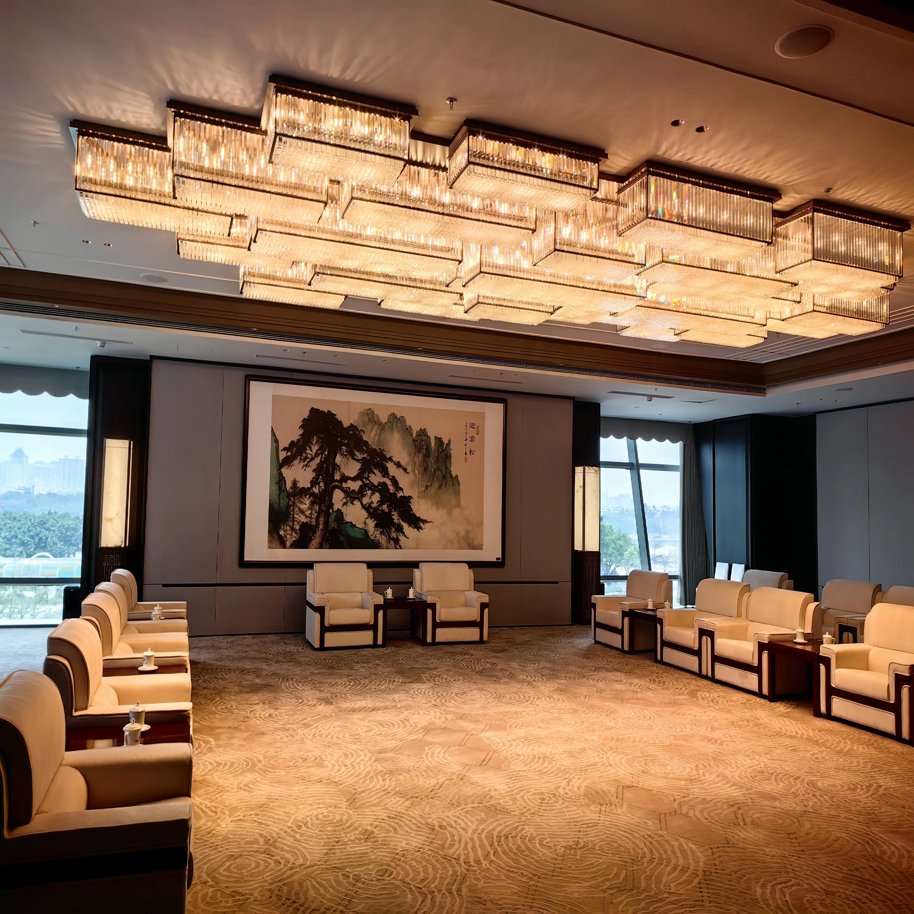 Wedding Hall Chandelier Hotel Hanging Pendant Light Customized Amber Crystal Chandelier Lighting for Lobby