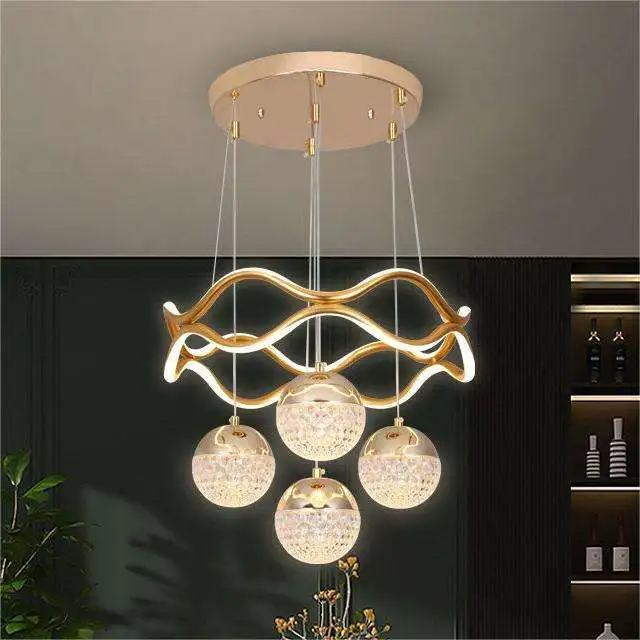 Zeal Lighting Living Room Warm Light Acrylic Shade Chandelier Lamp Led Golden Circle Rings Pendant Light